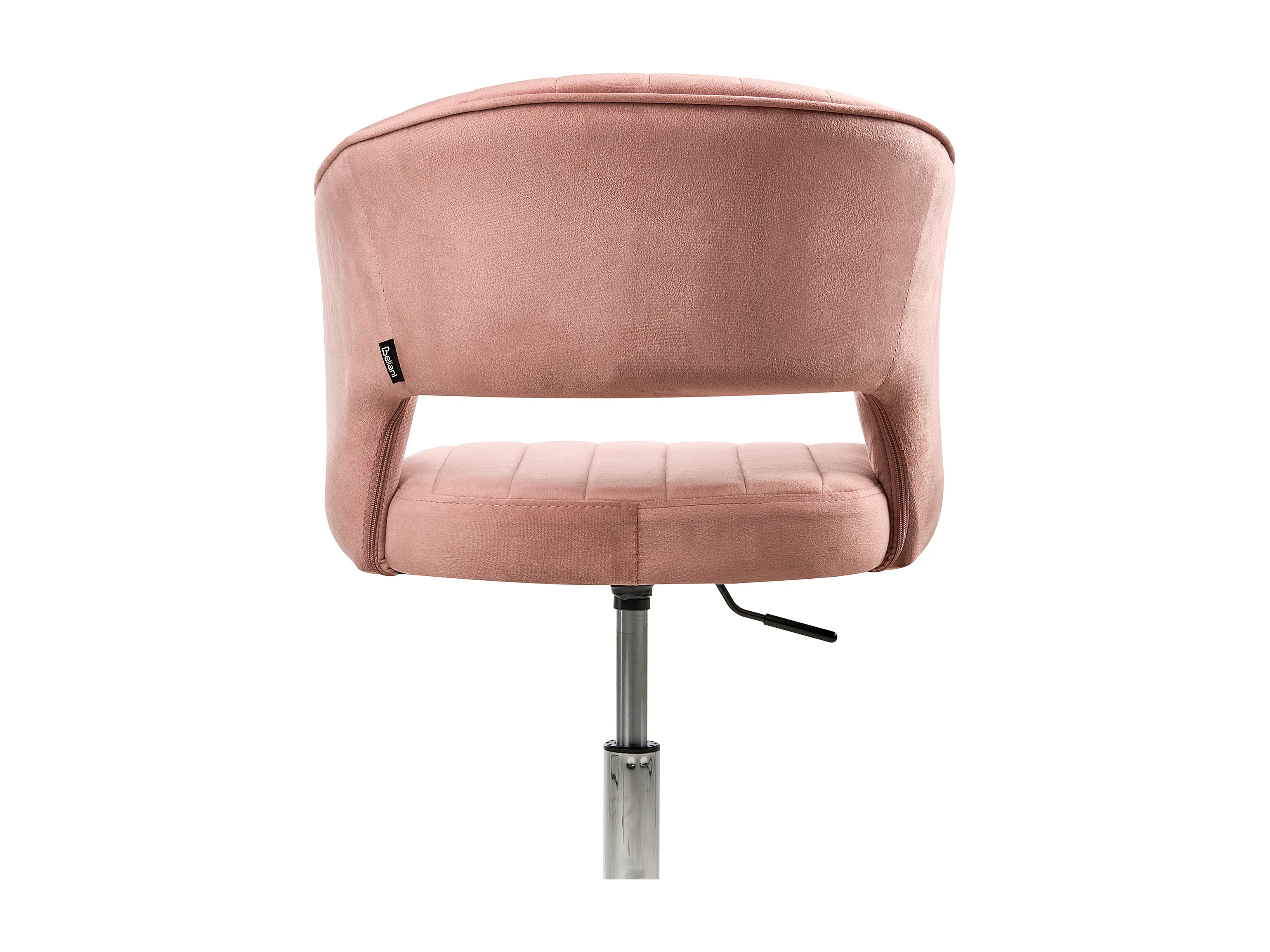 Chaise de bureau ronde à roulettes en velours vieux rose. Pam. L 59 x P 60 x H 79 / 89cm.