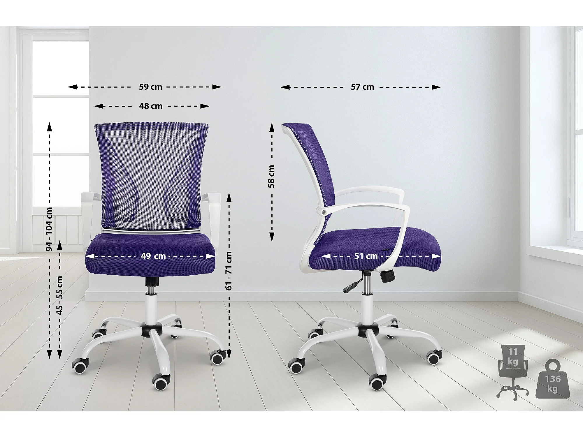Chaise de bureau - Microfibre & Blanc - Violet - Tracy