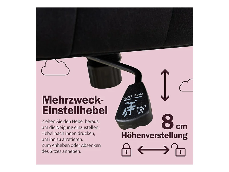 Chaise de bureau pivotante en velours - avec 5 roulettes - hauteur réglable - charge 150kg - Rouge