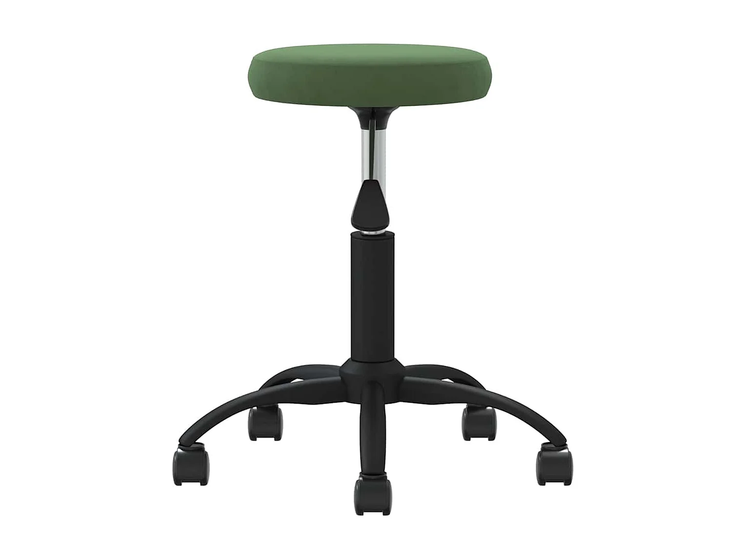Chaise de bureau à roulettes velours côtelé kaki piétement chromé. L 60 x P 62 x H 89 / 99cm