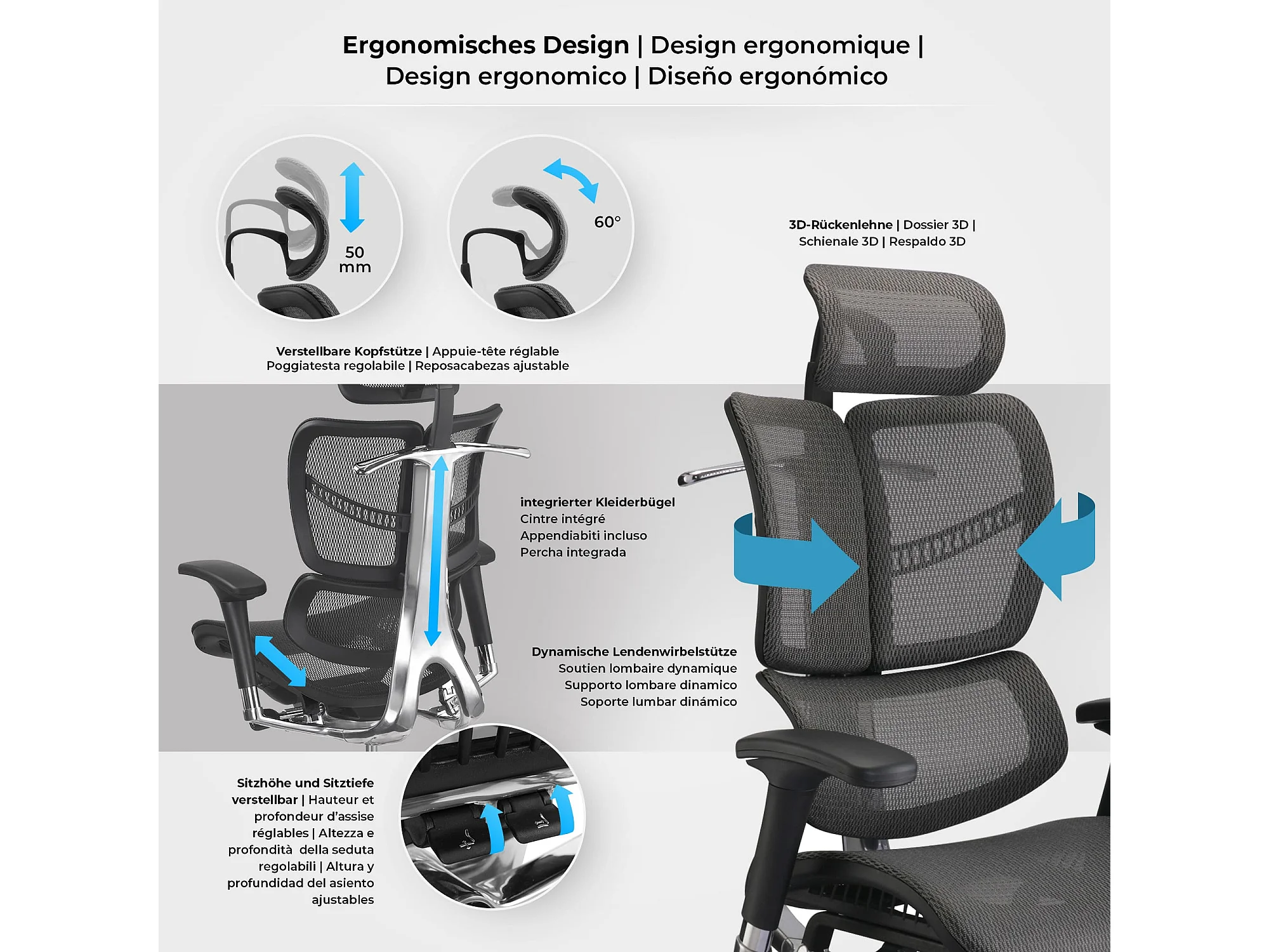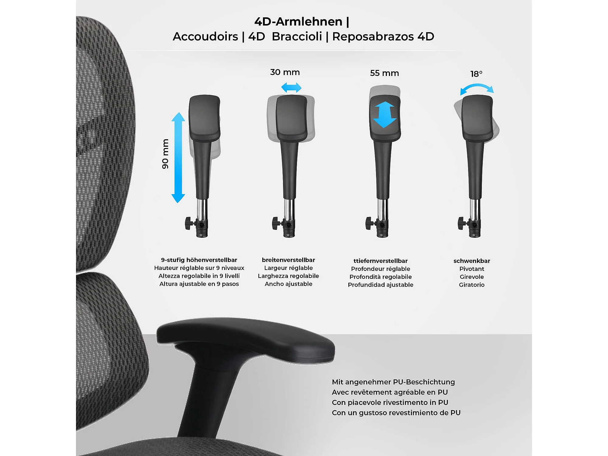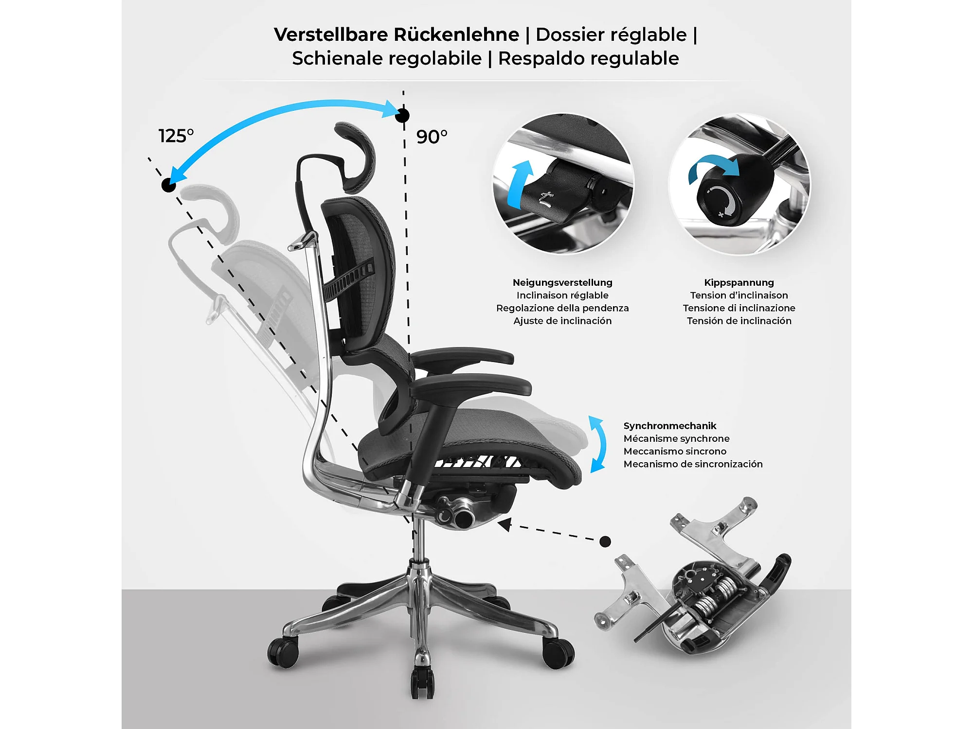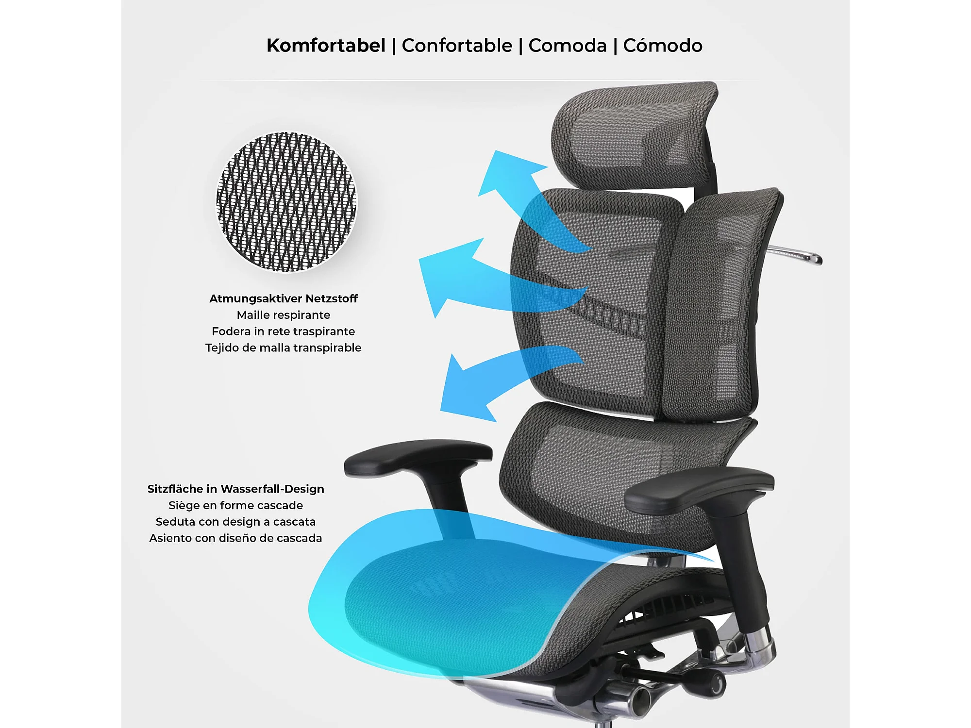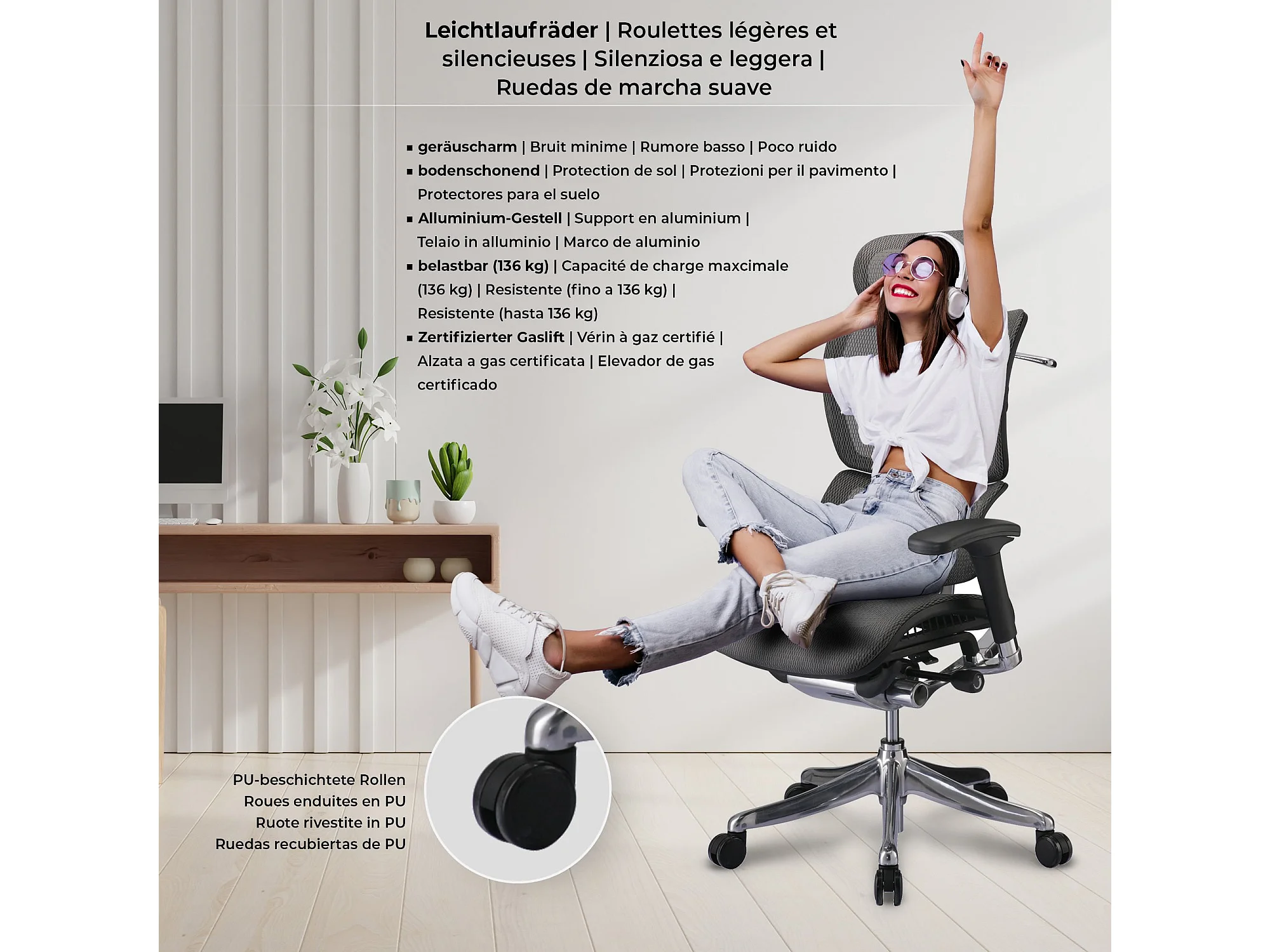 Chaise de bureau - Plastique & Aluminium - Gris - Norfolk