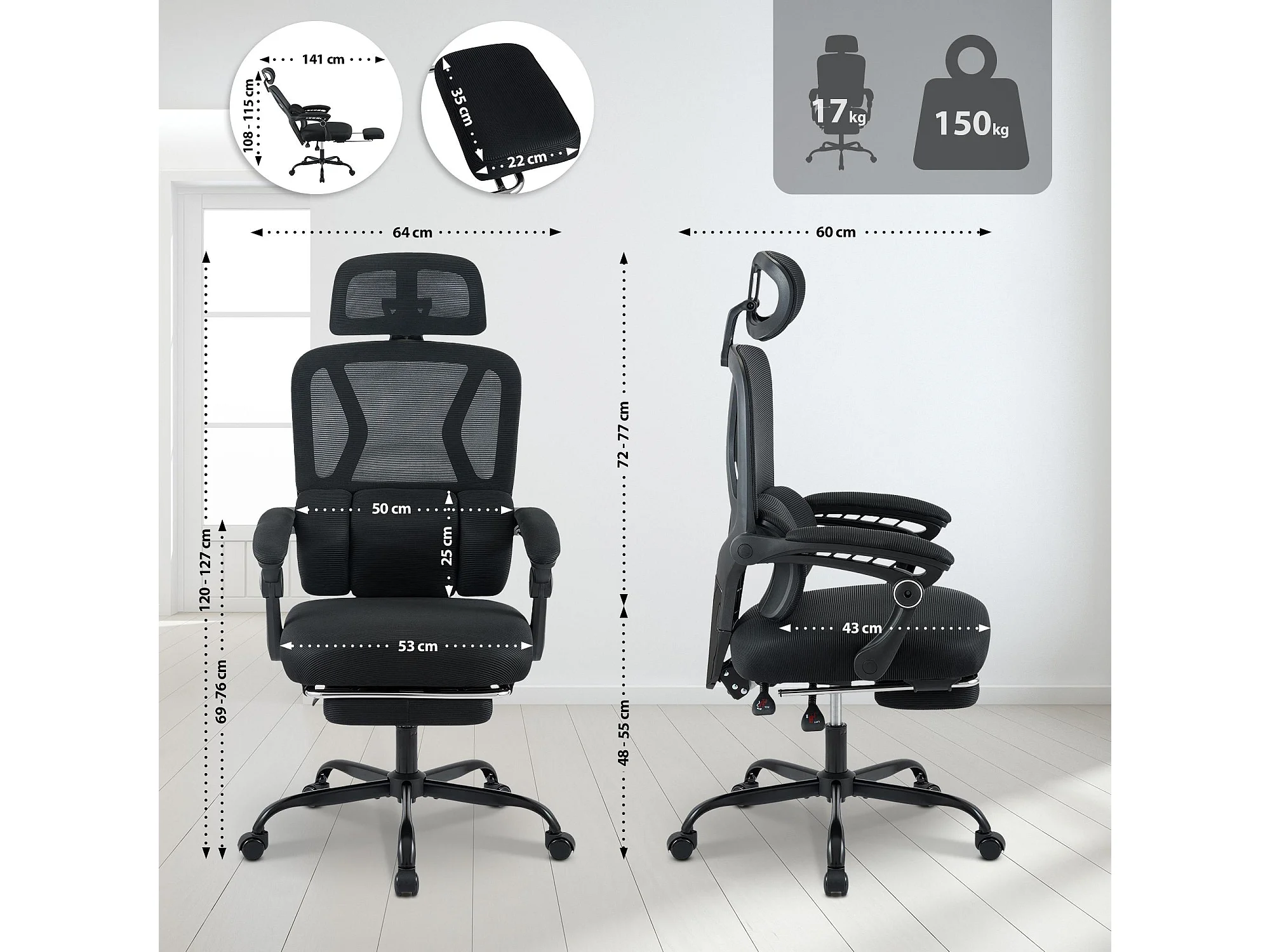 Chaise de Bureau New York, Noir, 63x65x122 cm, Seven Design