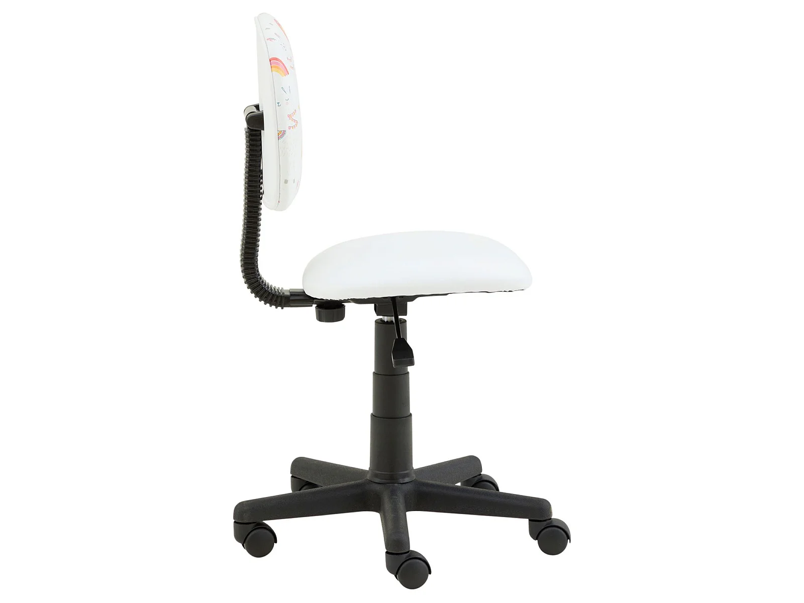 Chaise de bureau pour enfant ALPACA fauteuil pivotant à roulettes avec hauteur réglable, en synthétique blanc avec motif lama