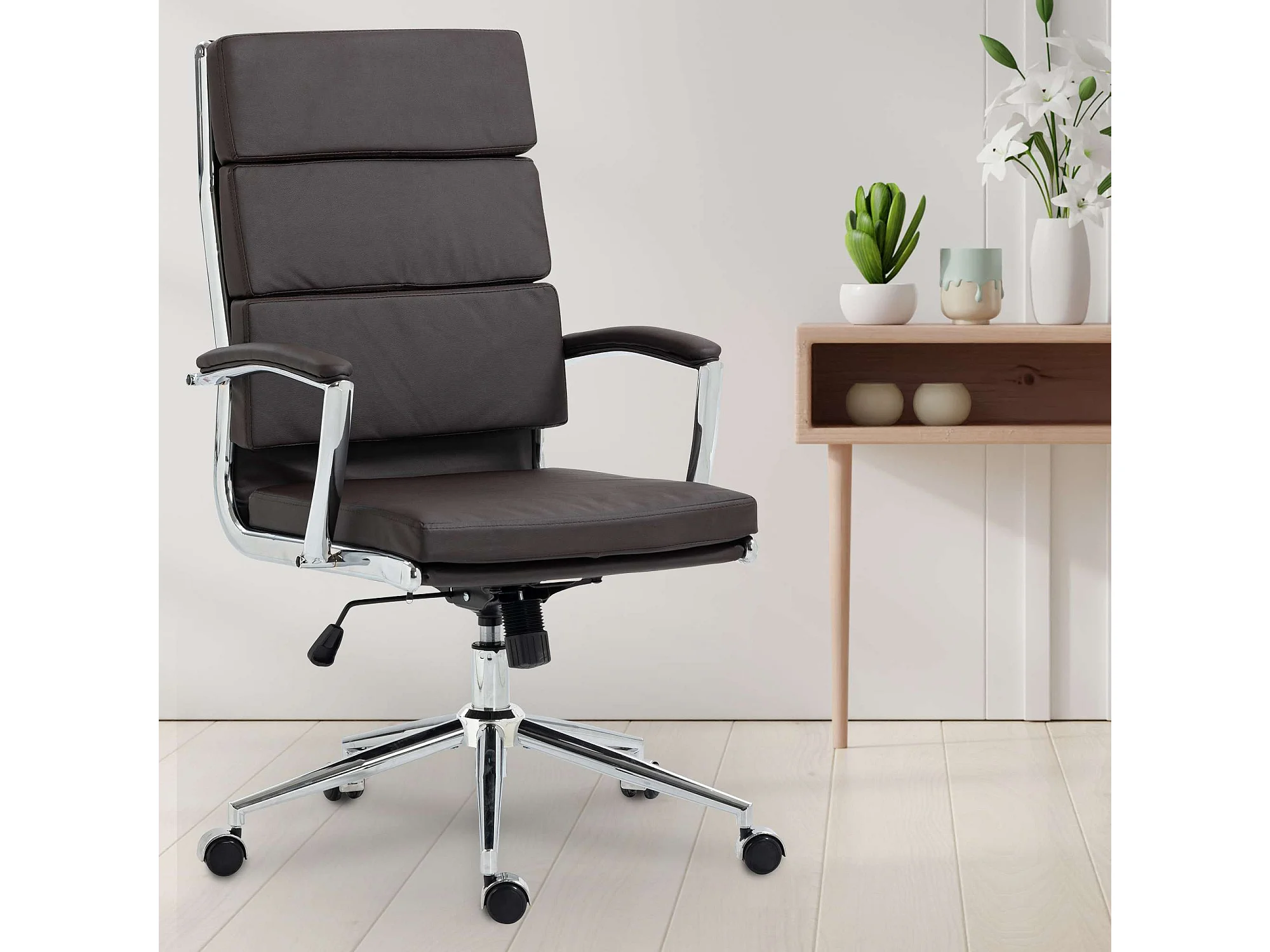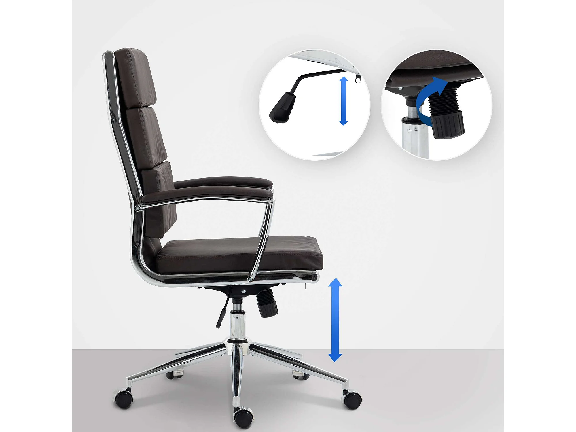 Chaise de bureau - Similicuir & Métal chromé - Marron - Cleveland