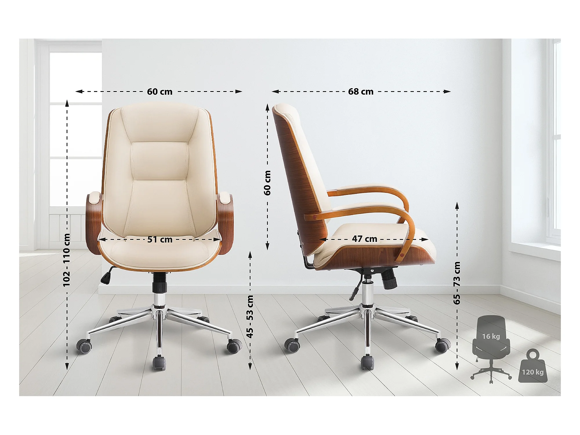 Chaise de bureau - Similicuir & Antique clair - Noyer / Crème - Yankton