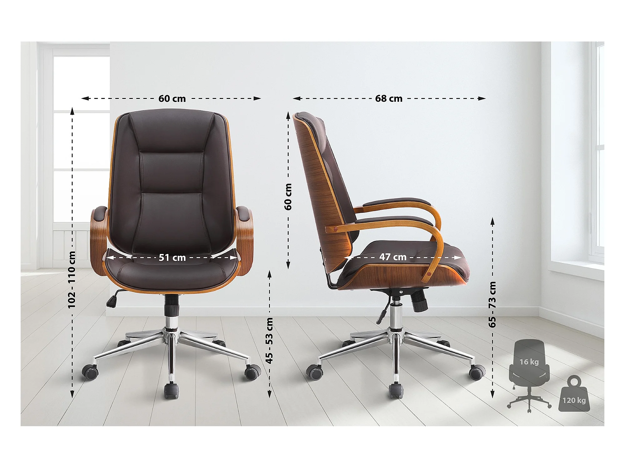 Chaise de bureau - Similicuir - Noyer / Marron - Yankton