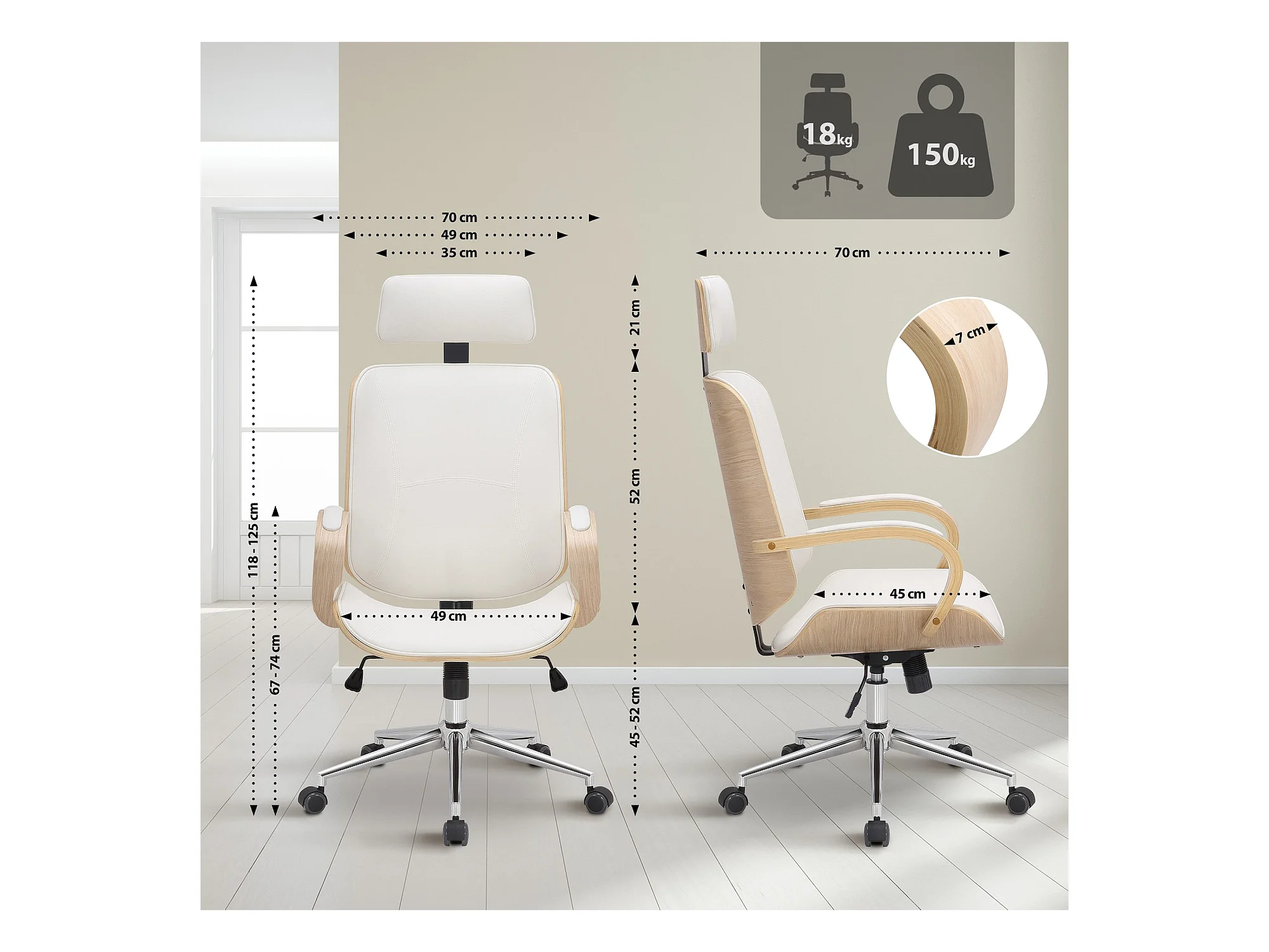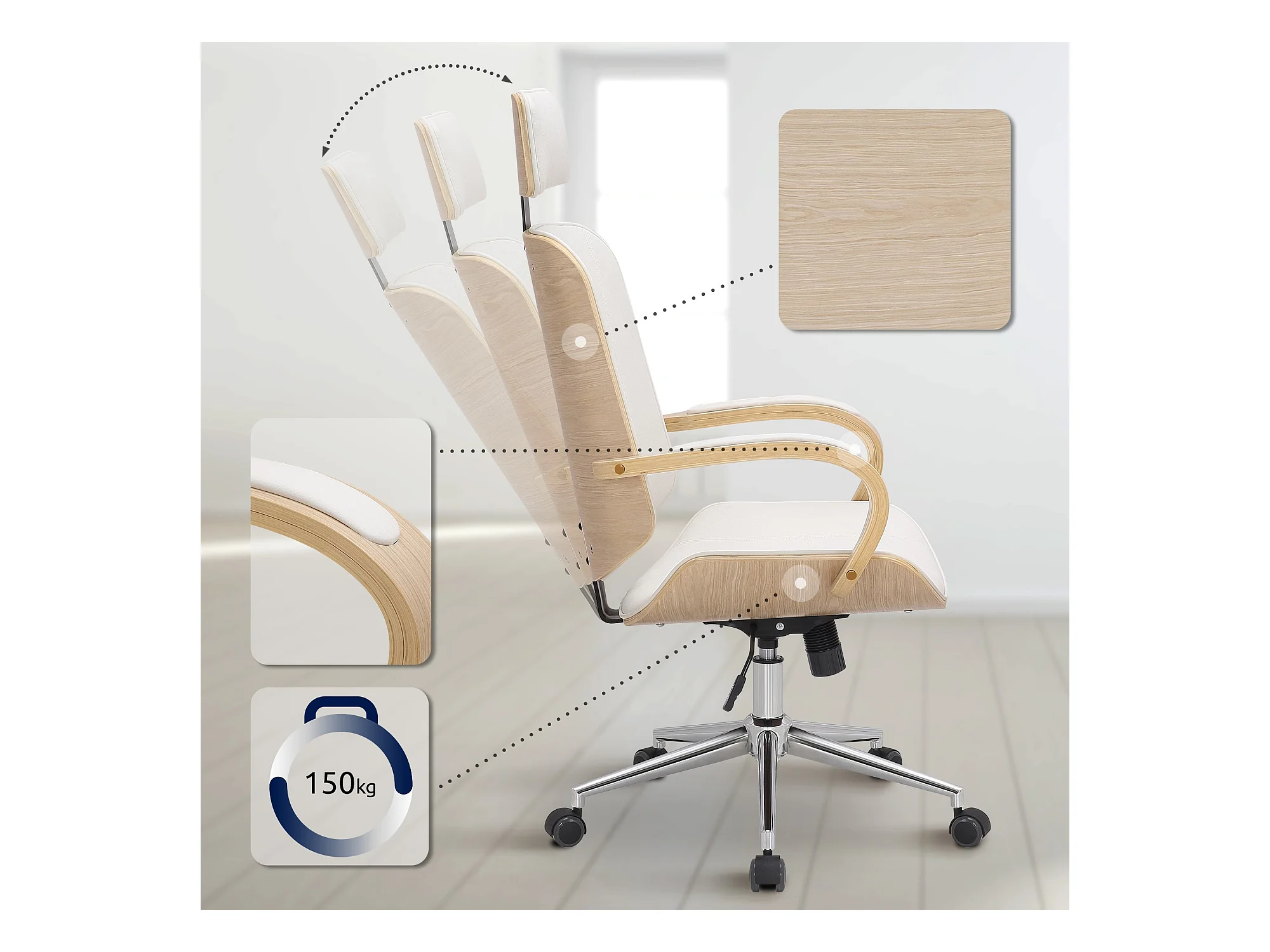 Chaise de bureau - Similicuir - Nature / Blanc - Dayton