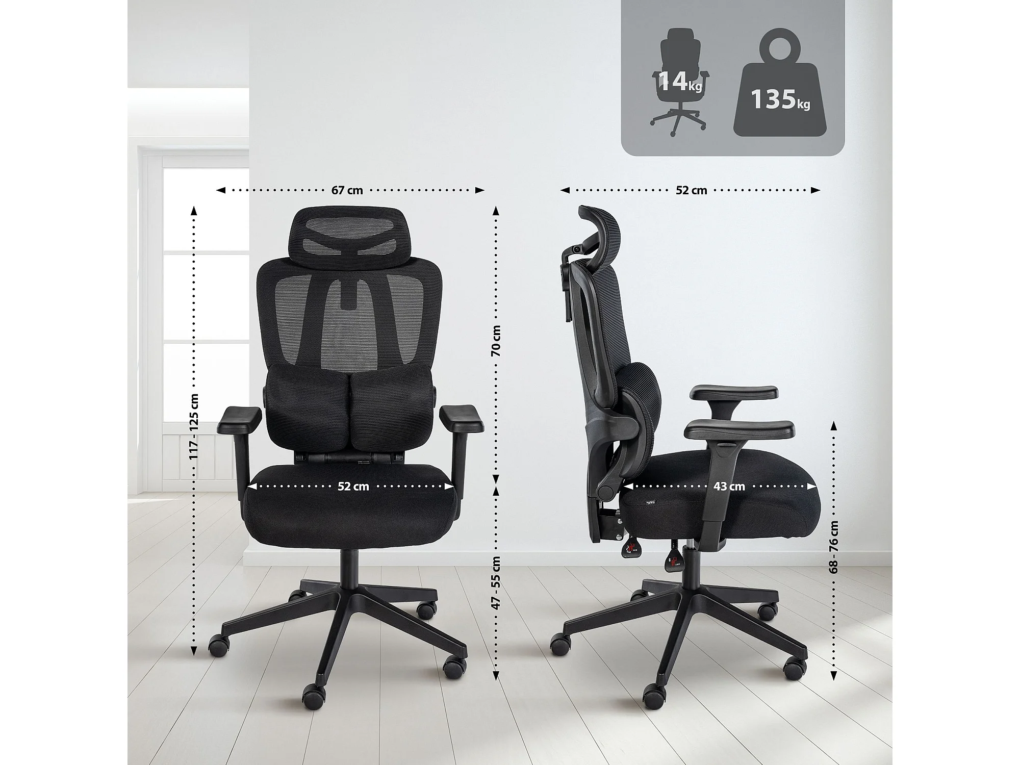 Chaise de bureau - Tissu & Noir - Noir - XL Sparta