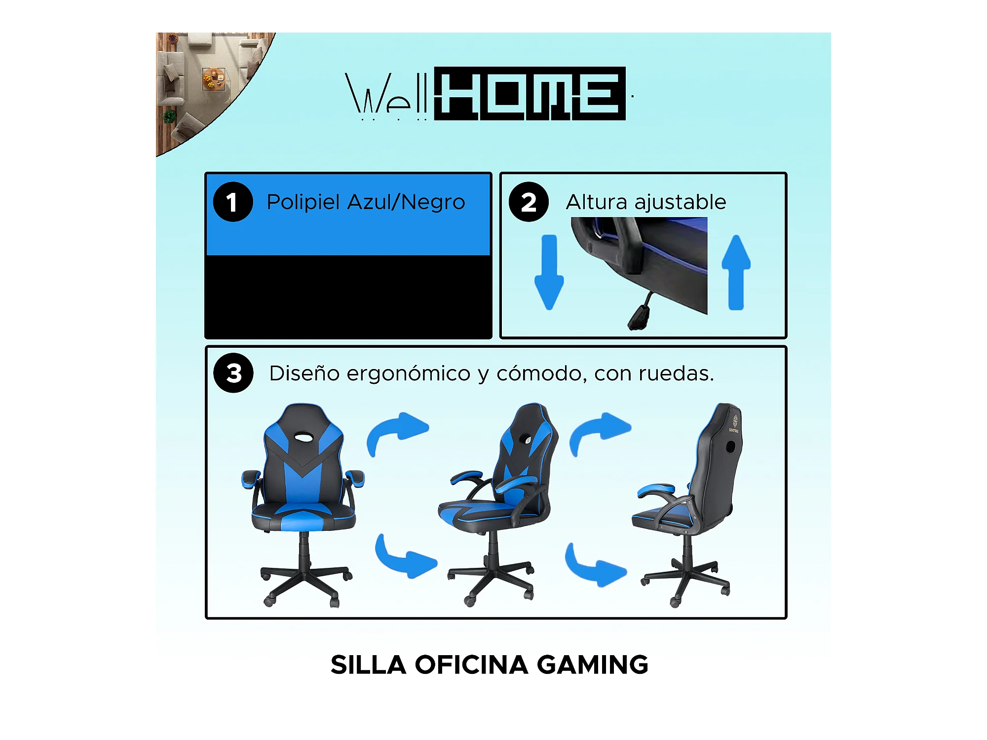 Chaise de bureau universelle gaming bleue avec accoudoirs