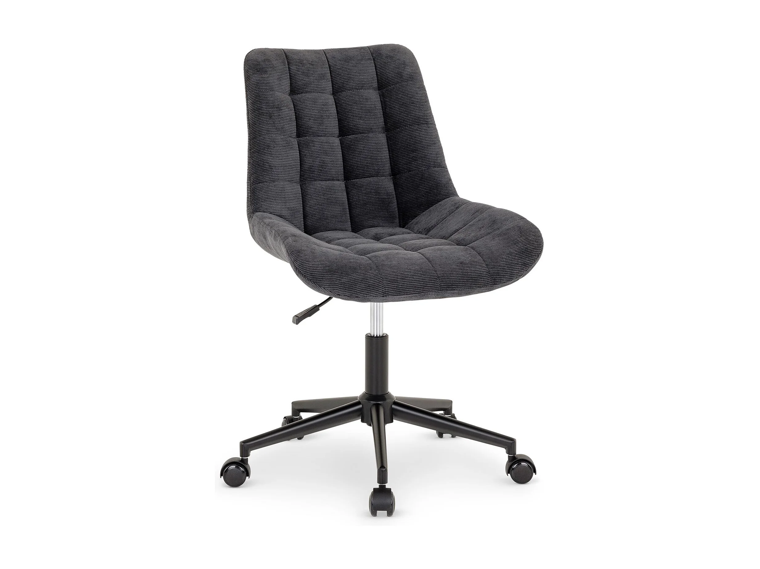 Chaise de bureau VASILO fauteuil en velours côtelé noir avec piétement en métal laqué noir