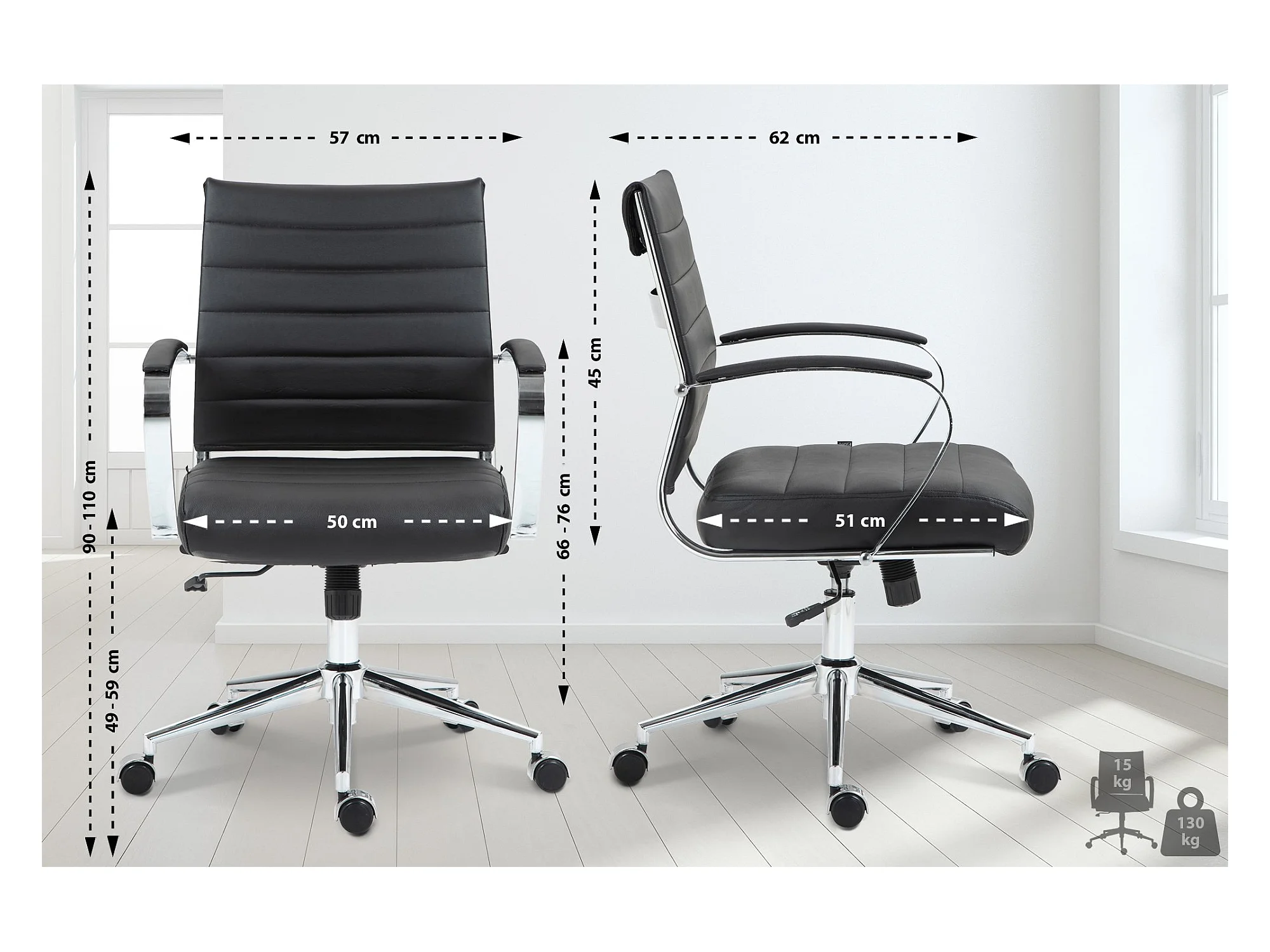 Chaise de bureau - Véritable cuir - Noir - Oakland