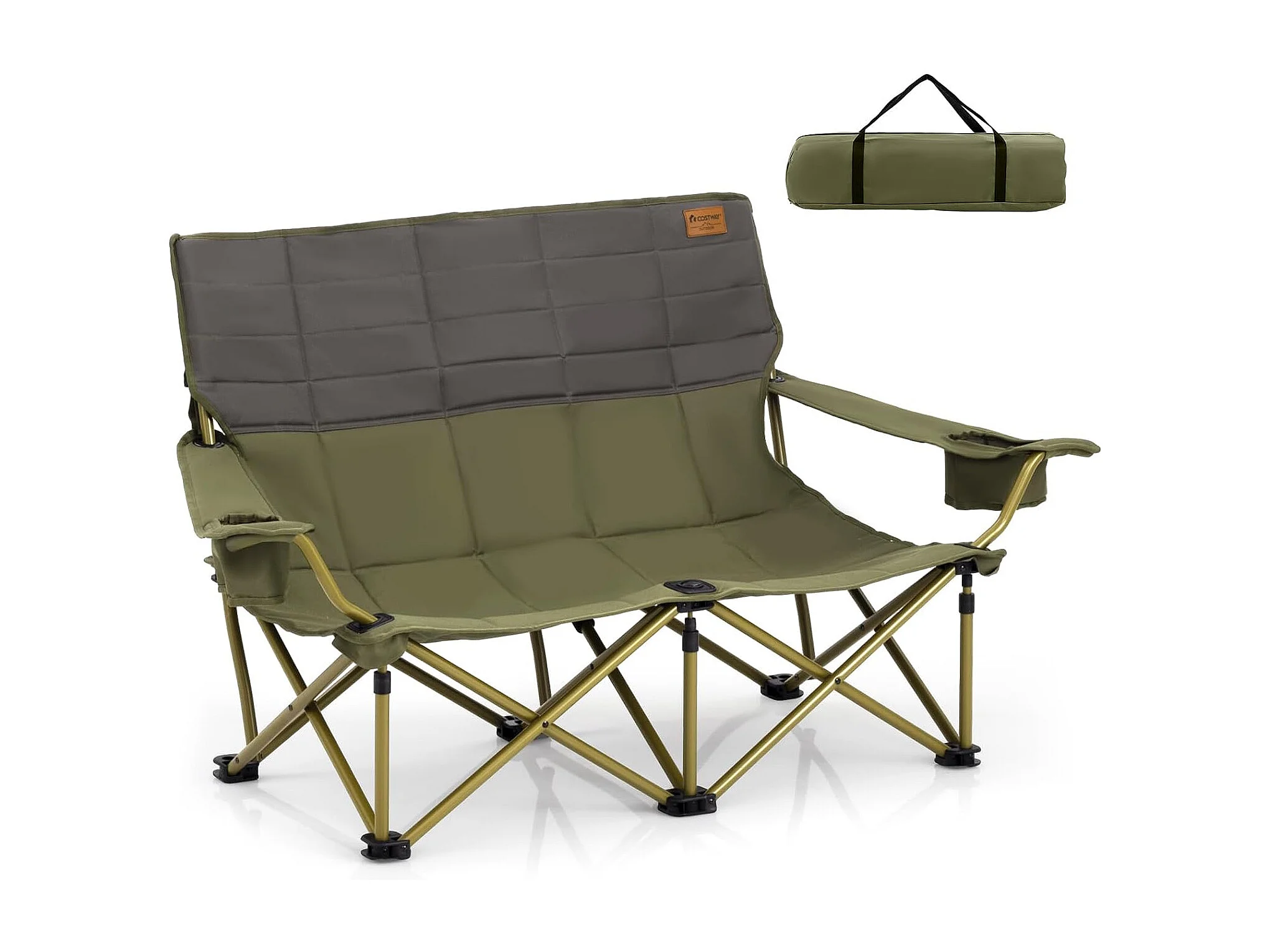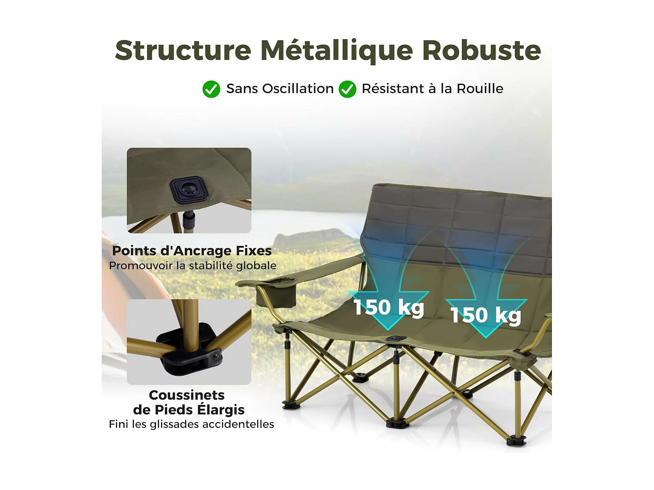 Chaise de Camping Surdimensionnée, Chaise de Pique-Nique Portable à 2 Places, Chaise de Plage avec Porte-gobelet et Sac de Transport, Charge 300 KG (Vert,149 x 70 x 80 cm)