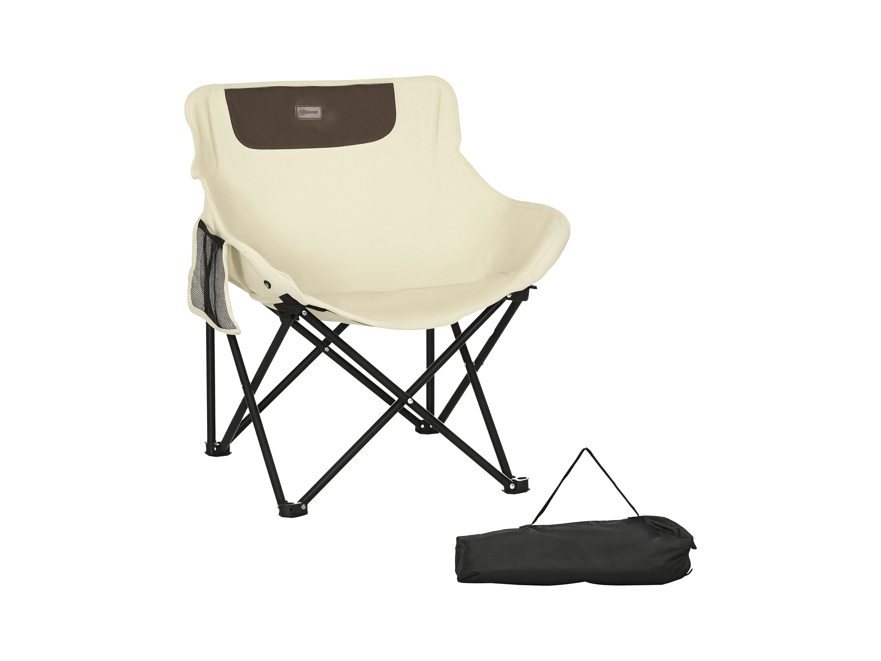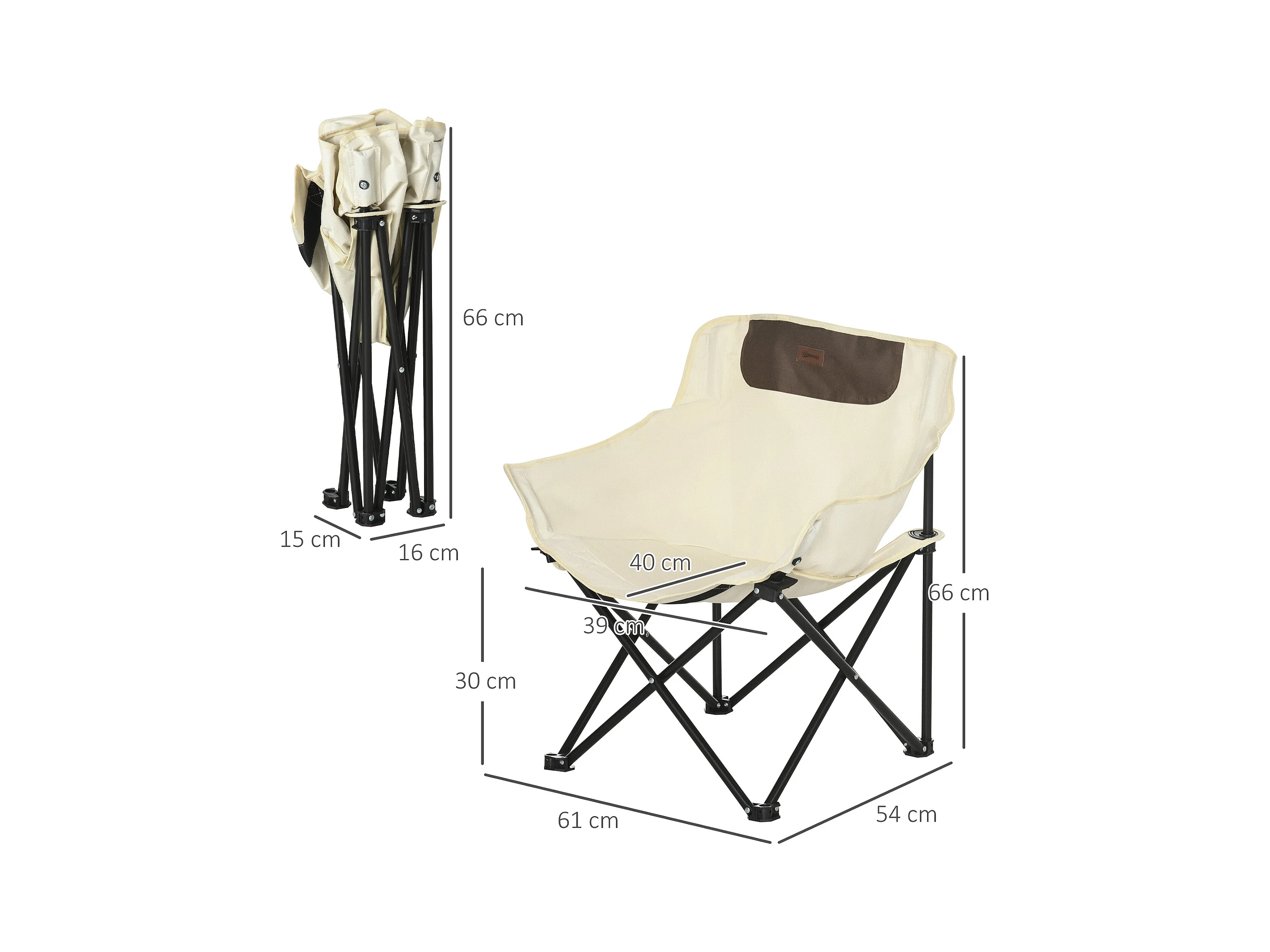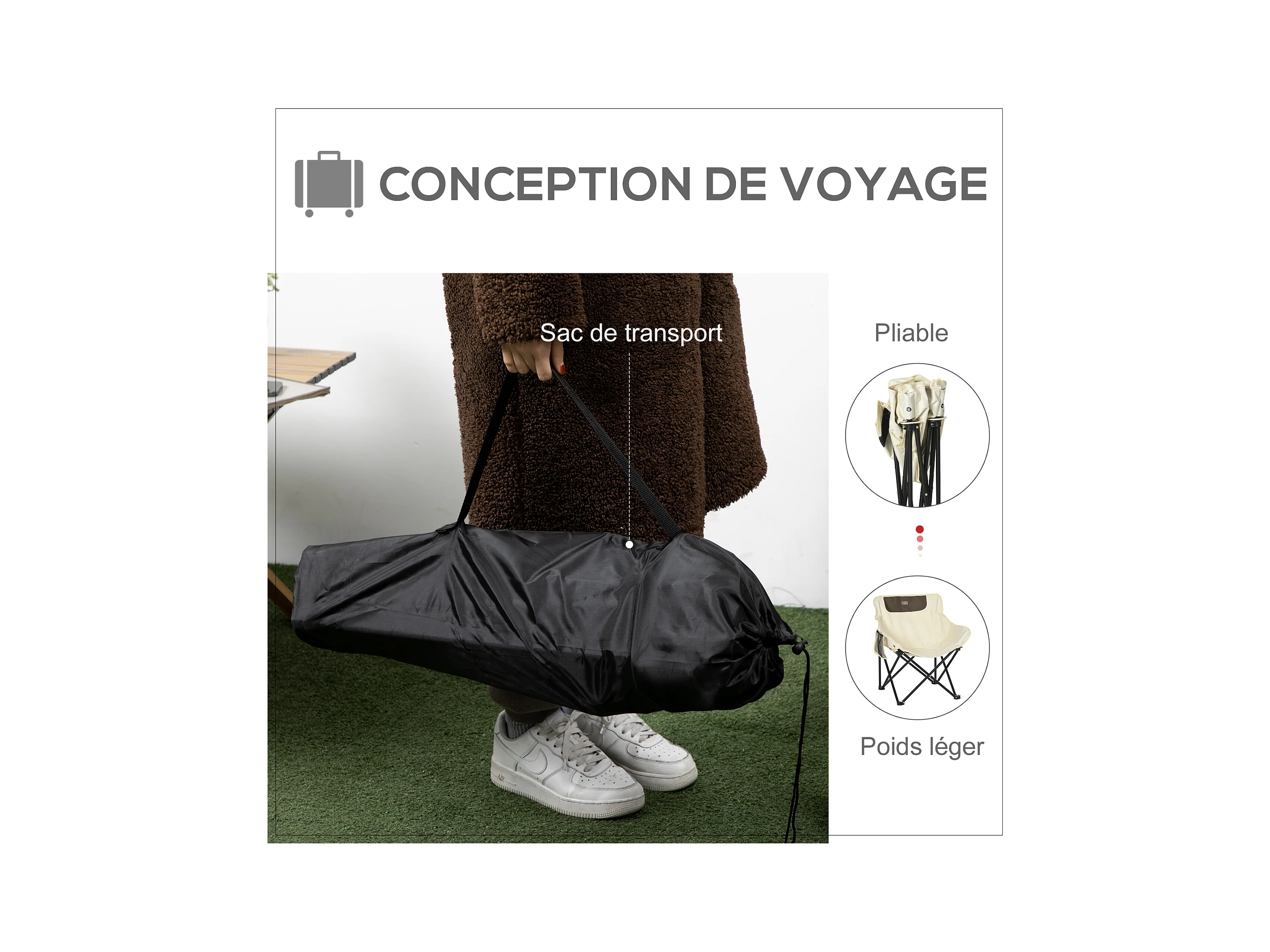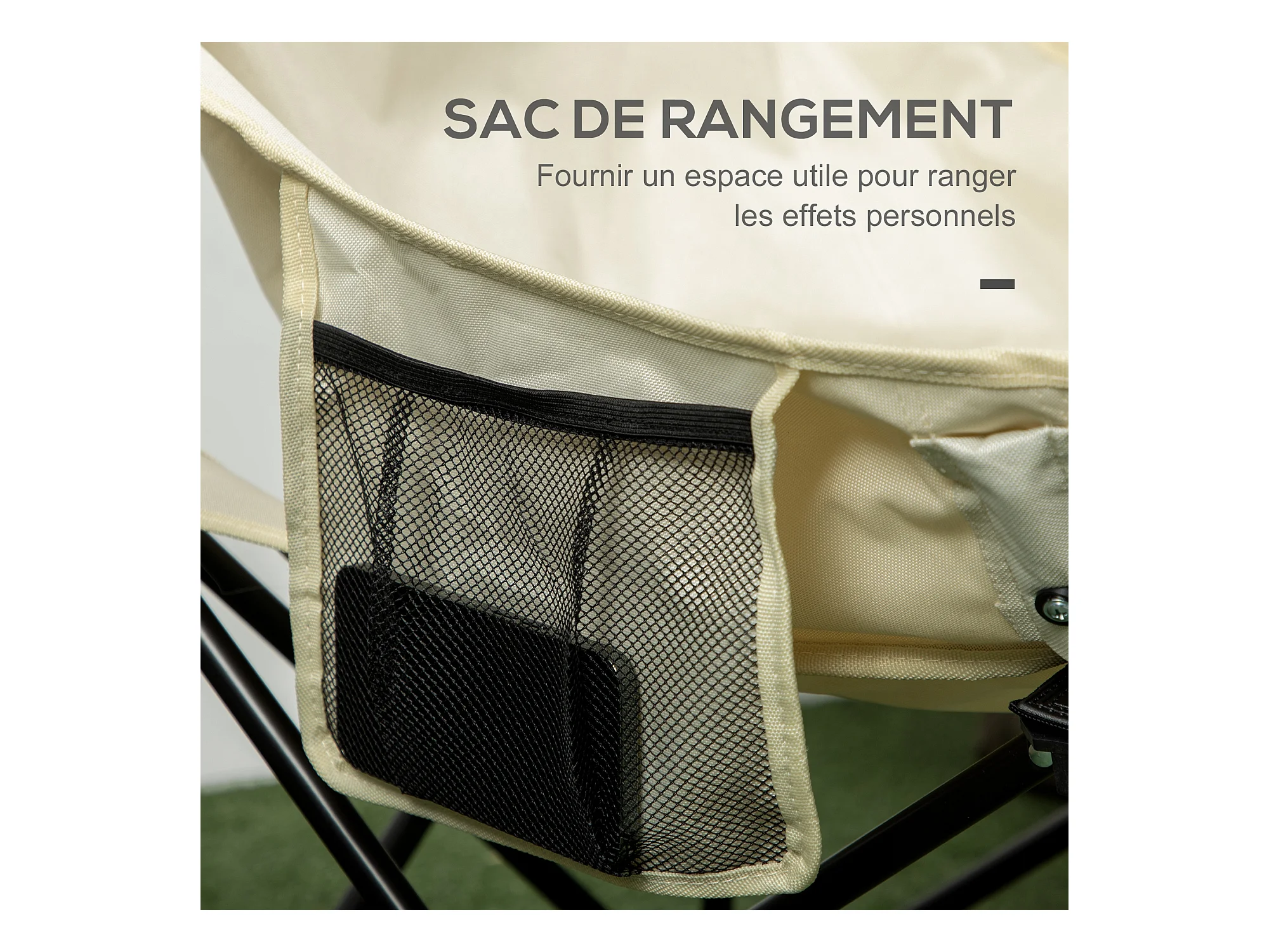 Chaise de camping pliable avec sac de transport et pochette de rangement acier oxford beige