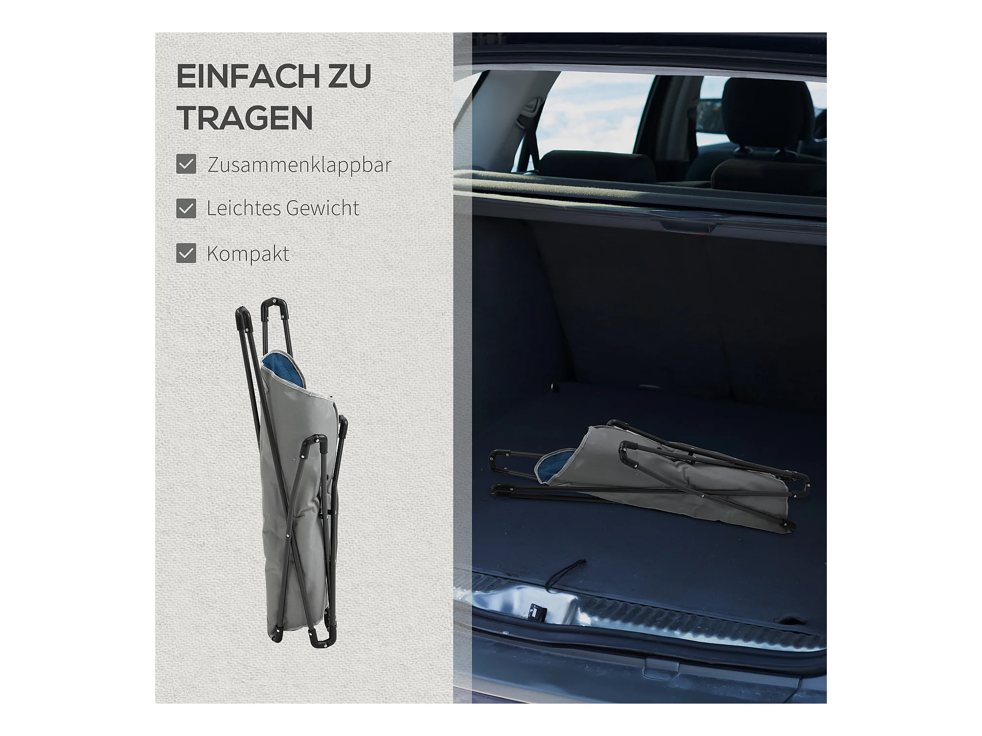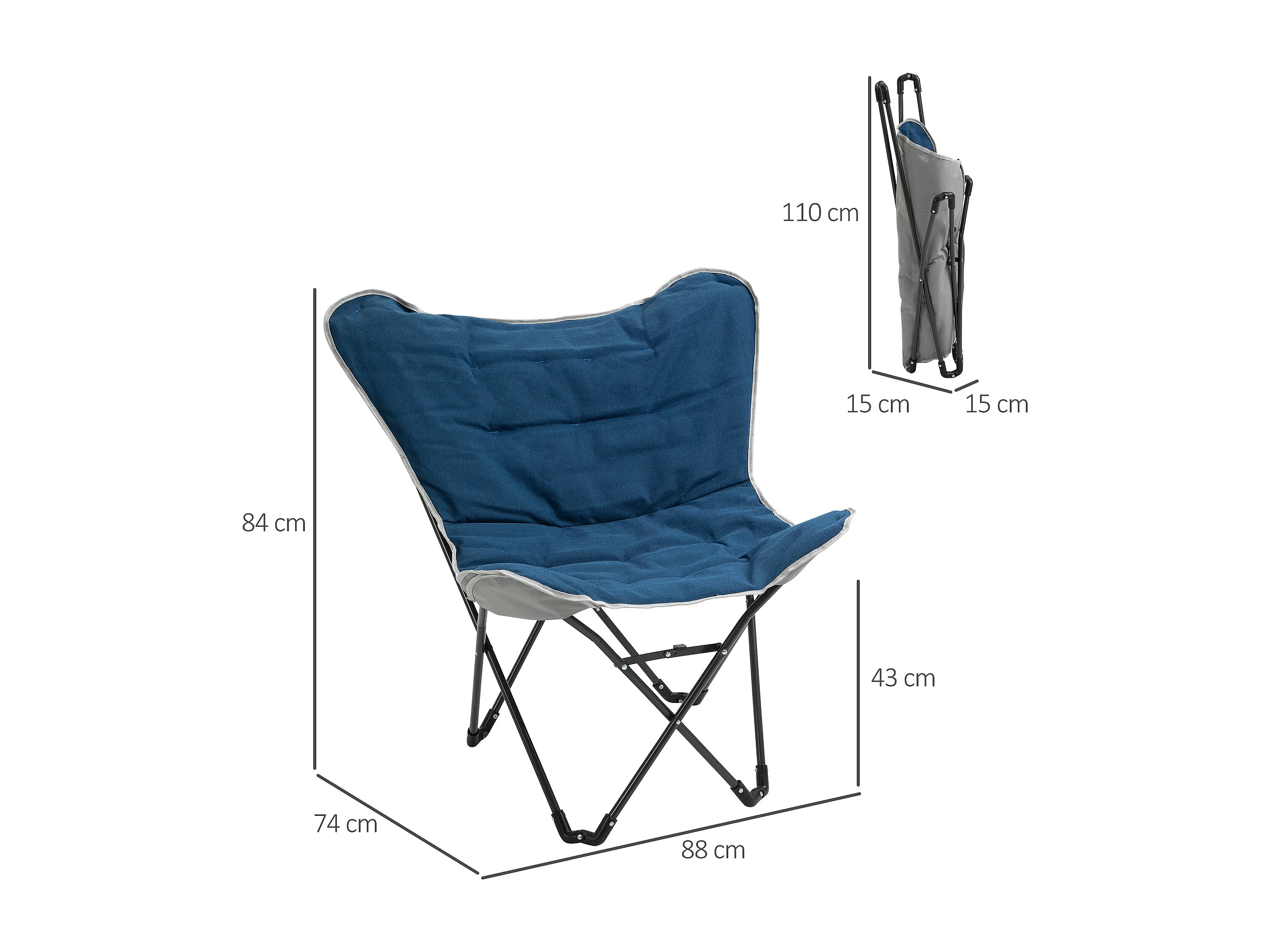 Chaise de camping pliante avec accoudoirs, polyester, bleu, légère et robuste (88x74x84cm)