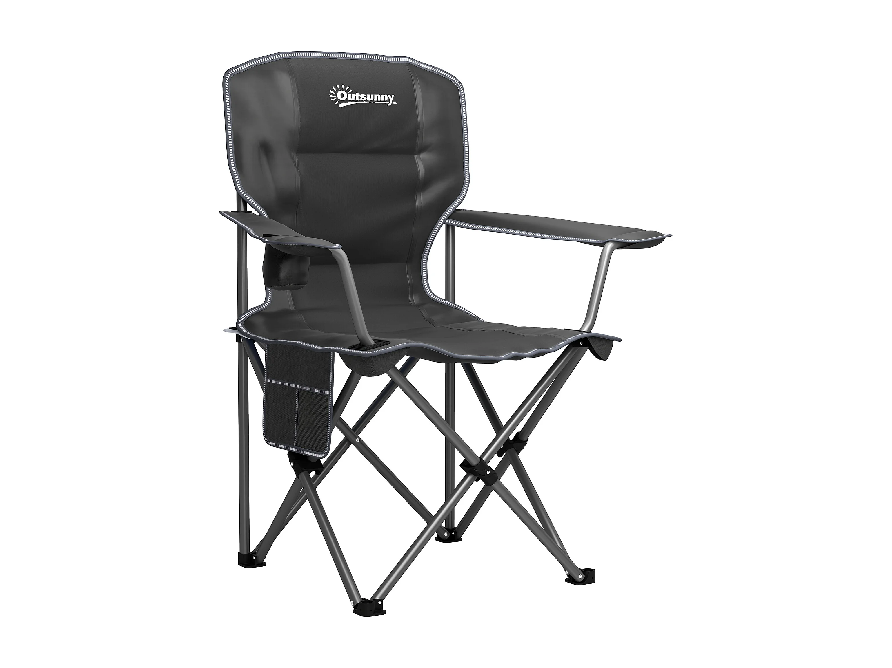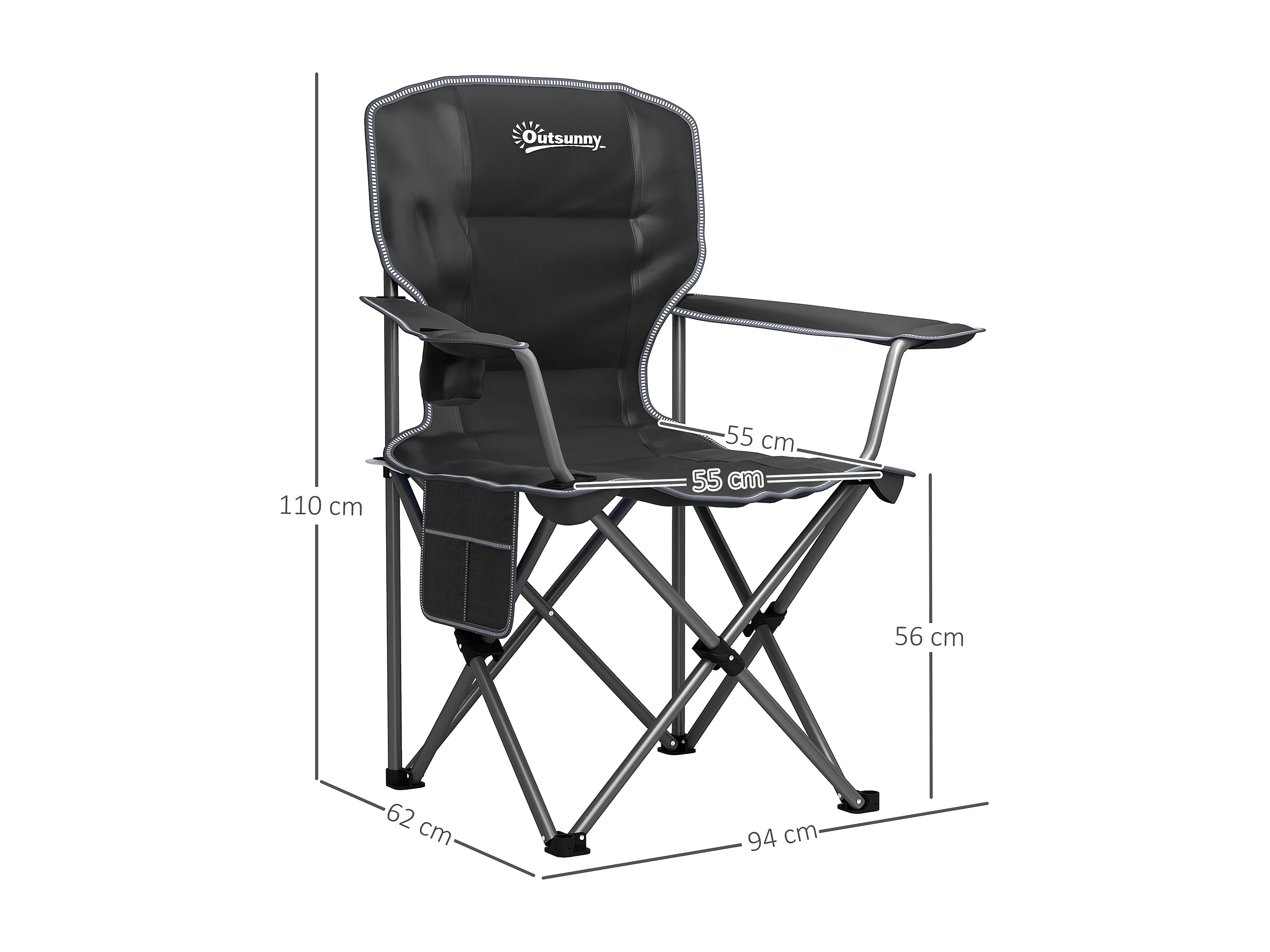Chaise de camping pliante rembourrée - porte-gobelets, poches latérales rangement - sac transport inclus - noir