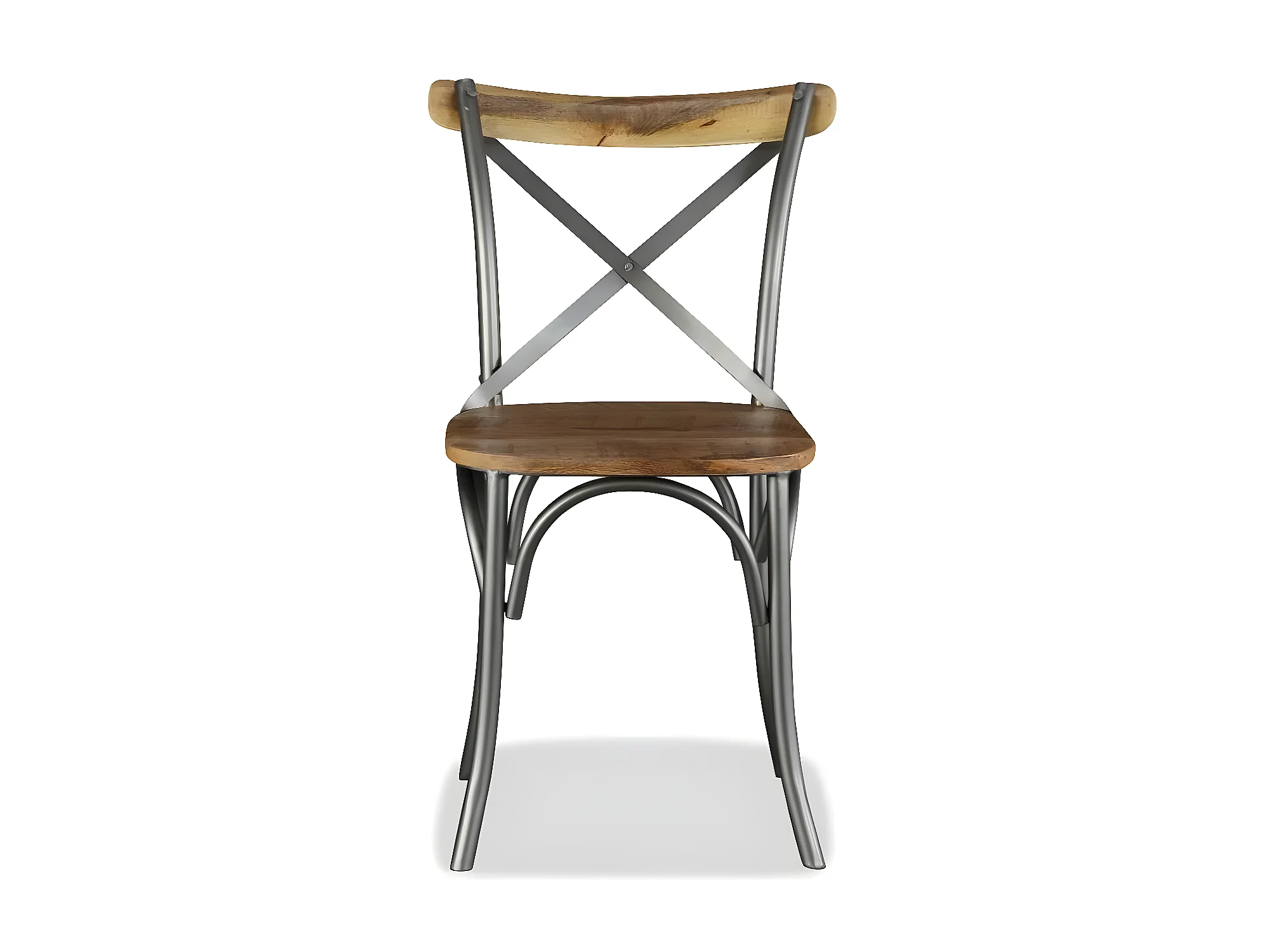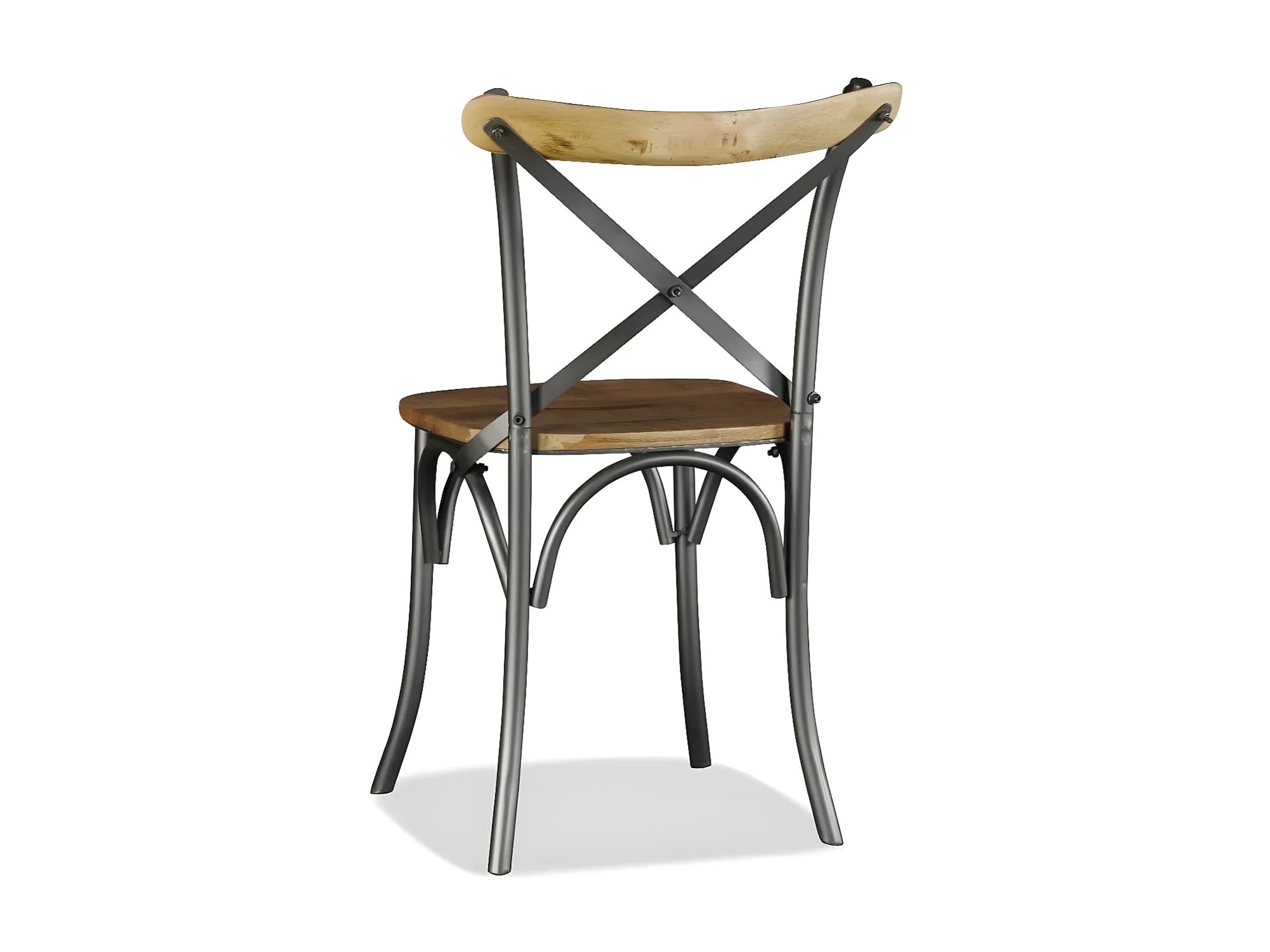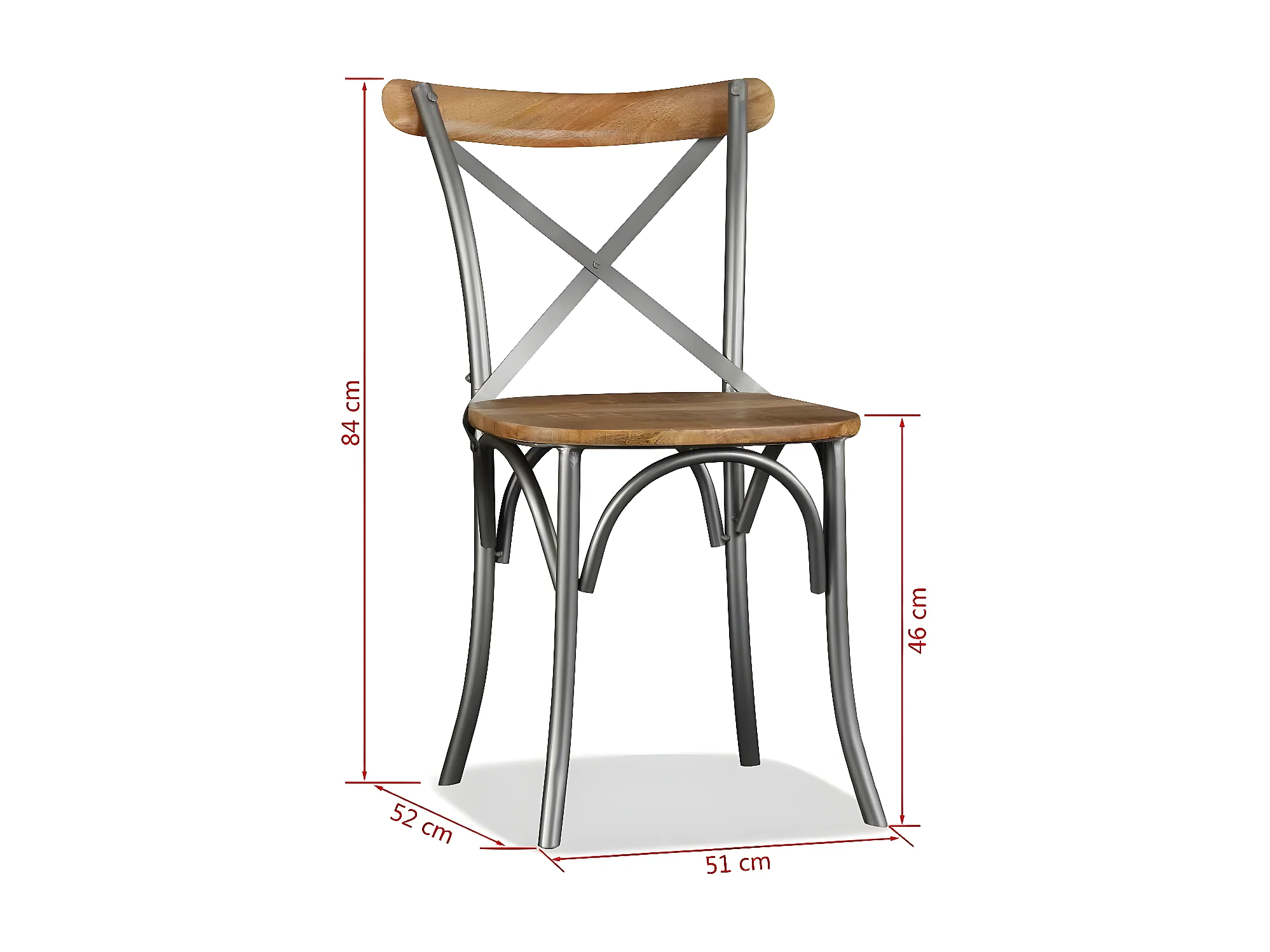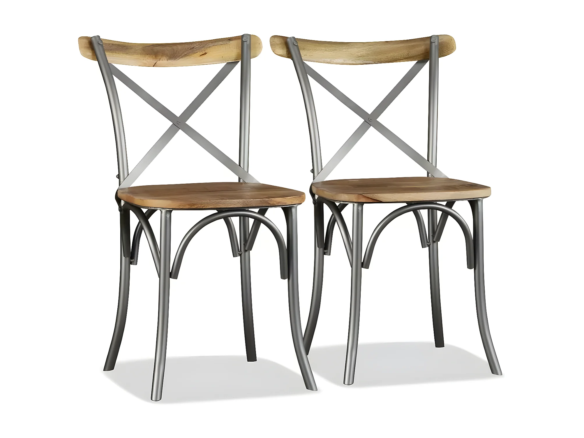 Chaise de cuisine bois vintage massif clair et métal gris Tiphen - Lot de 2