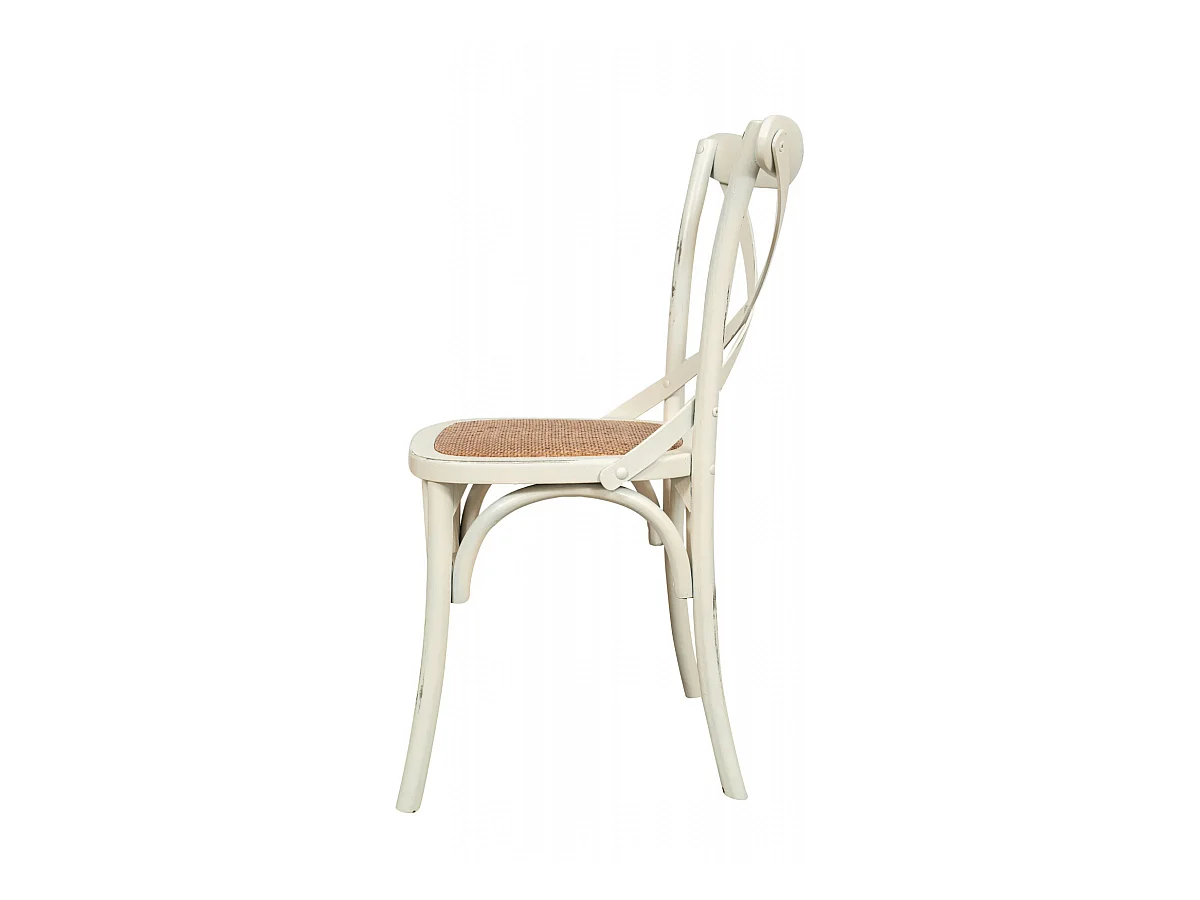 BISCOTTINI Chaise Harmonie - Bois massif blanc antique avec assise en rotin vintage - Cuisine - Bistro - Salle à manger - Salon - 48x52x88 cm