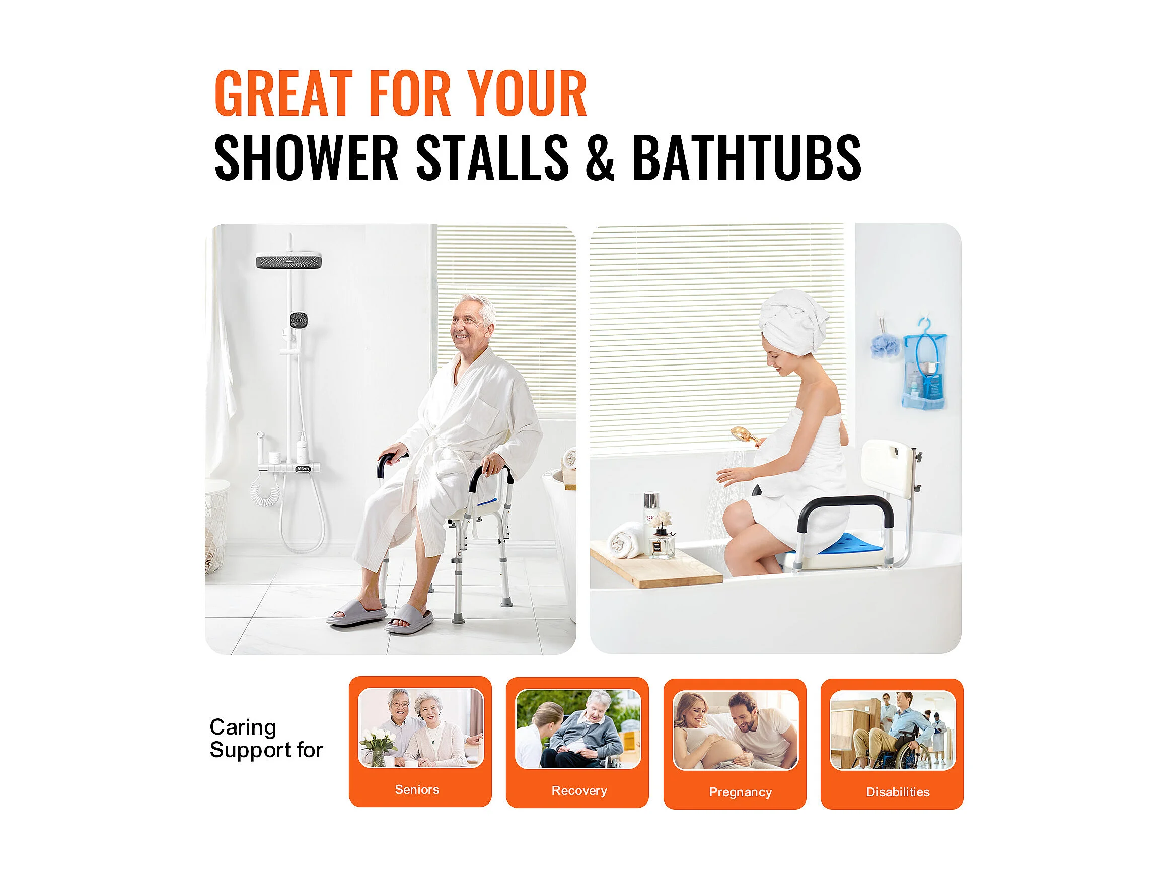 Chaise de Douche SucceBuy Chaise de Douche Robuste de 400 lb avec Hauteur Réglable, Surface Antidérapante, Idéale pour la Baignoire et la Douche