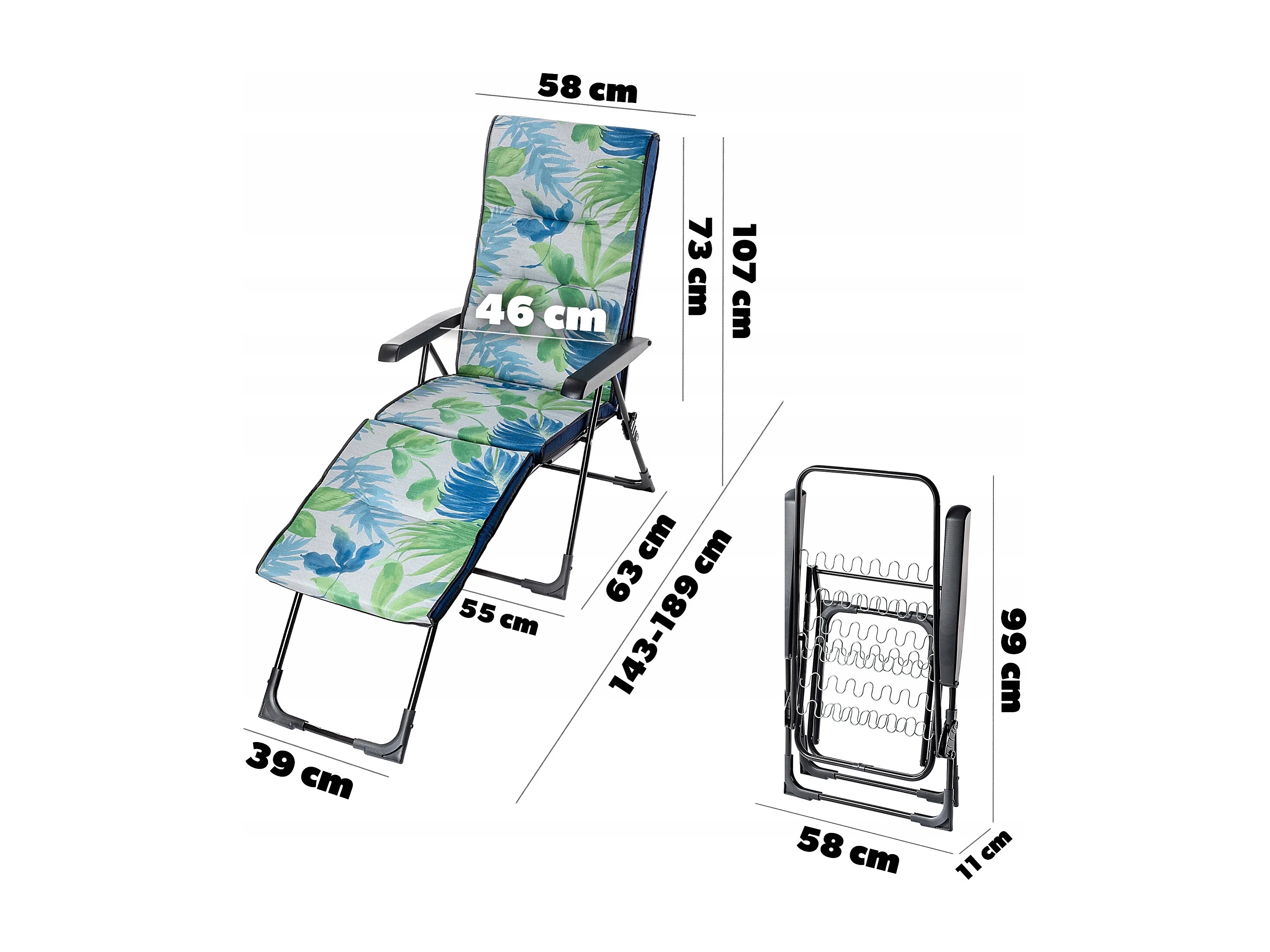 Chaise de jardin 2 en 1 KADAX, chaise longue en acier avec coussin, chaise longue pliante avec capacité de charge jusqu'à 110 kg, chaise de jardin avec