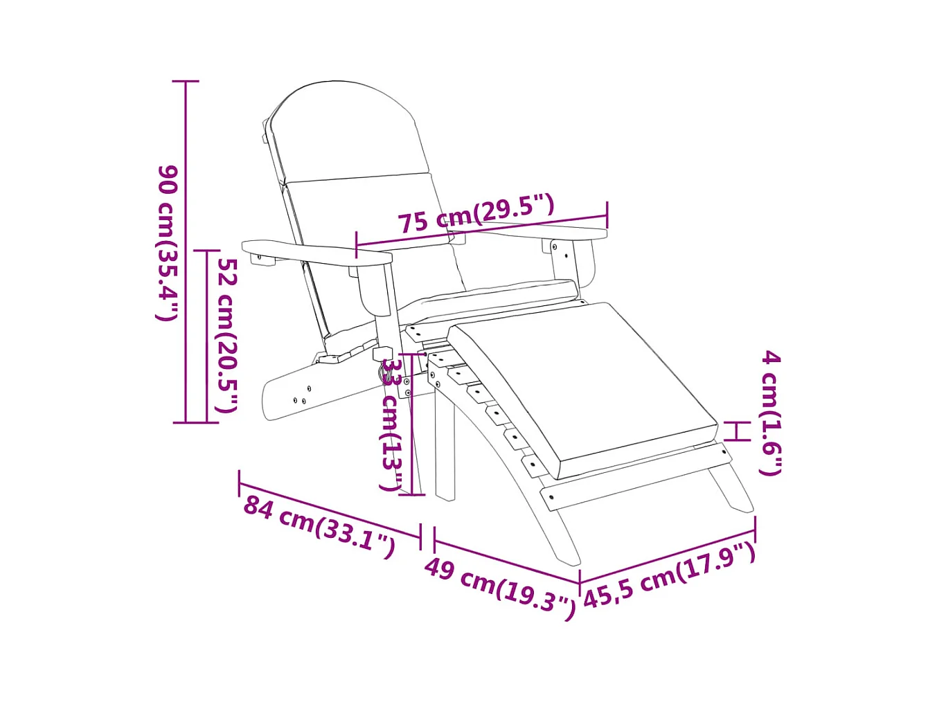 Chaise de jardin Adirondack et repose-pieds bois massif acacia