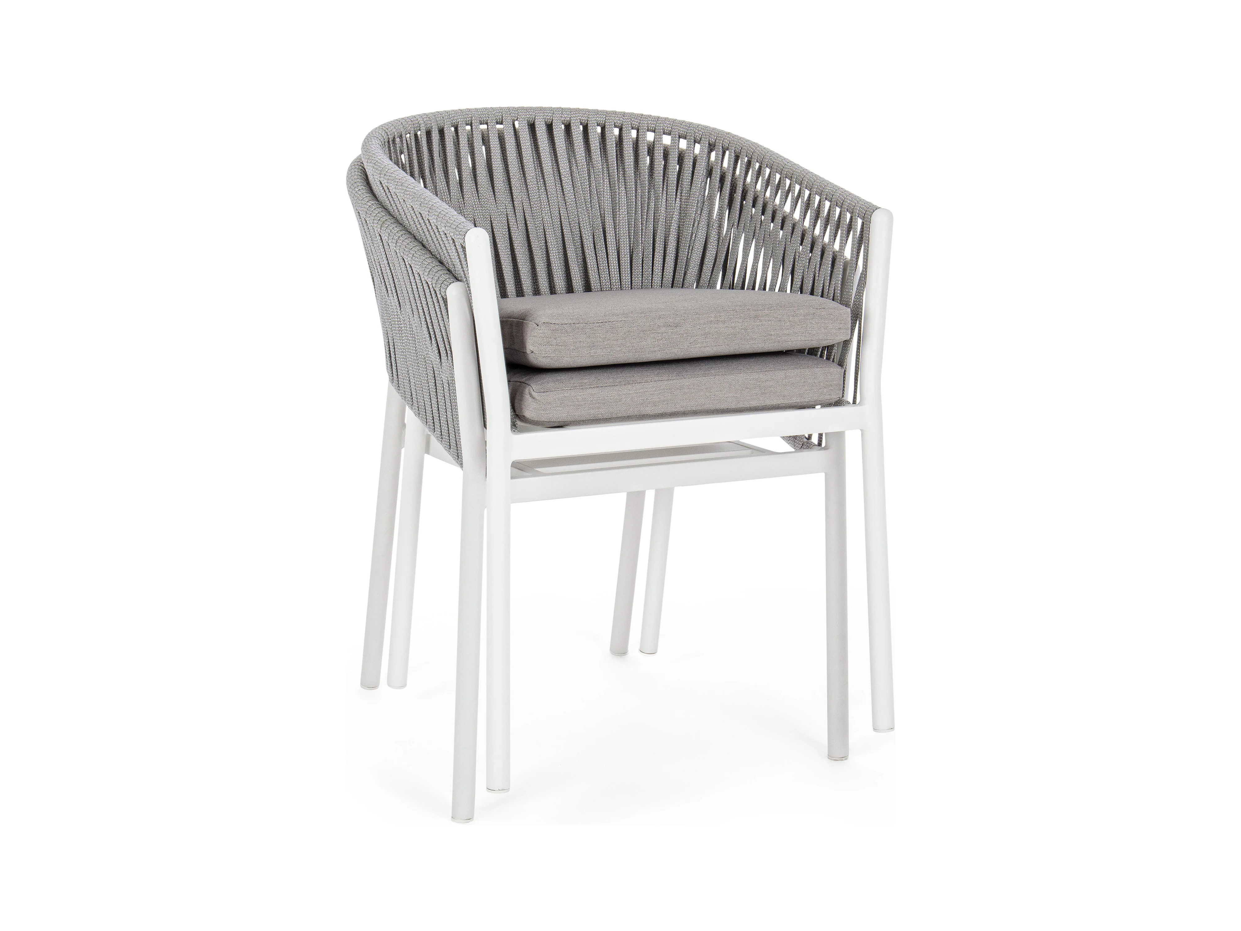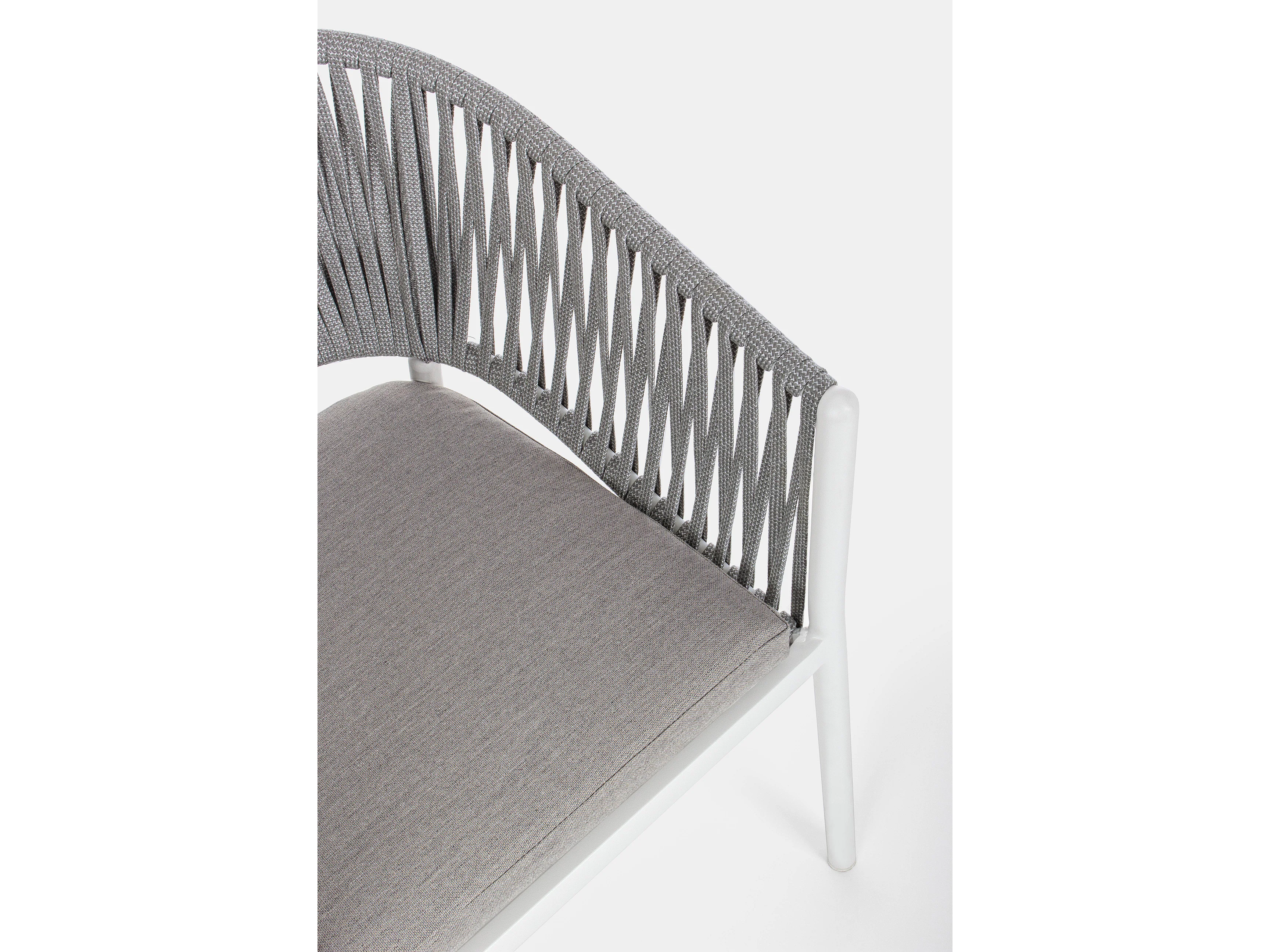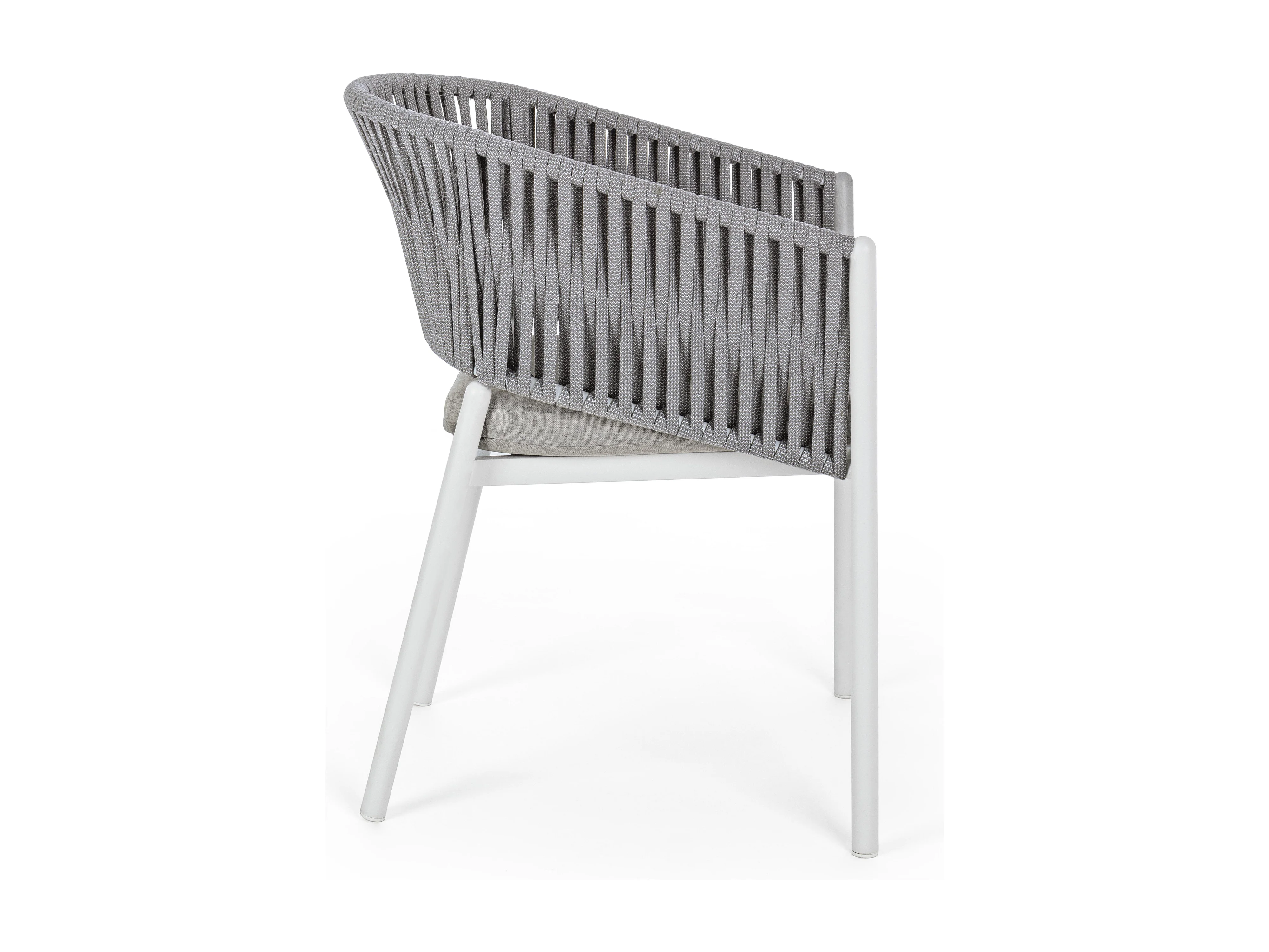 Chaise de jardin avec accoudoir aluminium blanc et tressage de cordes gris taupe Flora