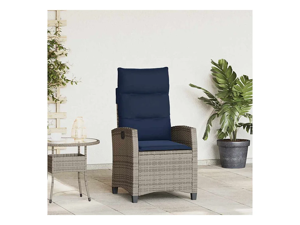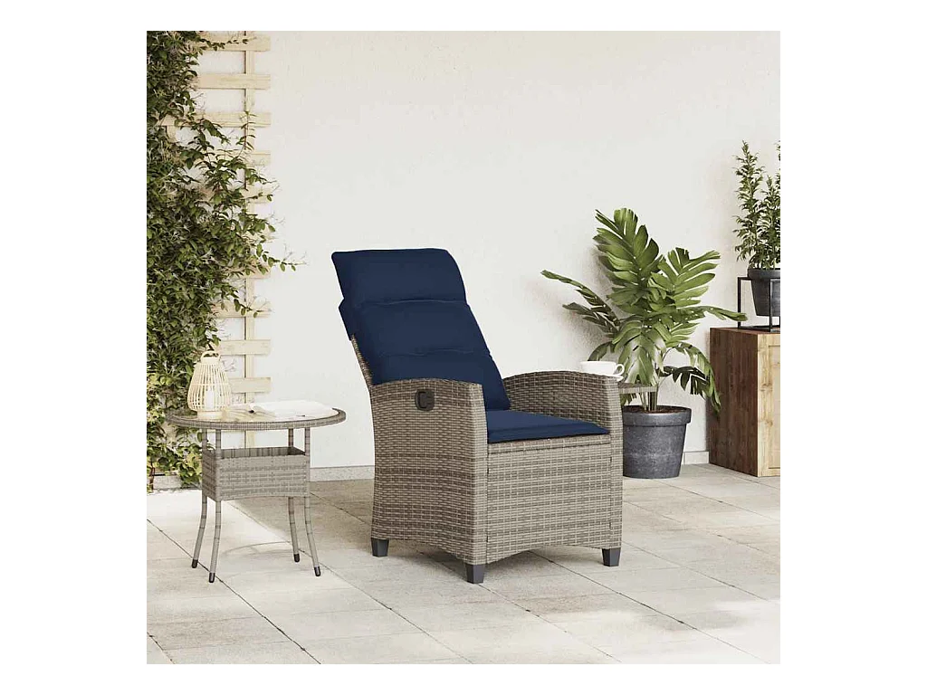 Chaise de jardin inclinable avec table d'appoint gris polyrotin