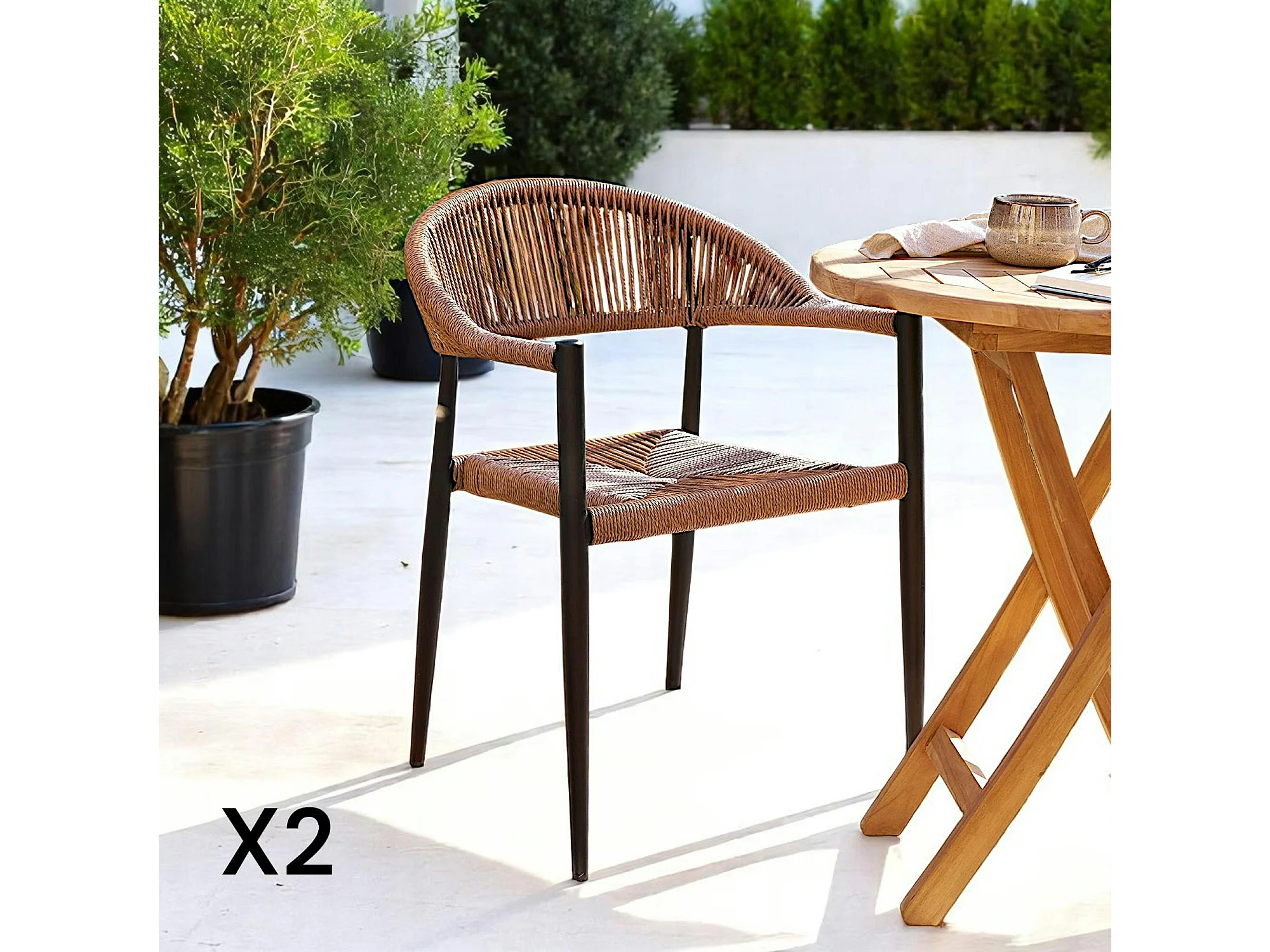 Chaise de jardin noire en résine tressée et aluminium (lot de 2) MENDOZA