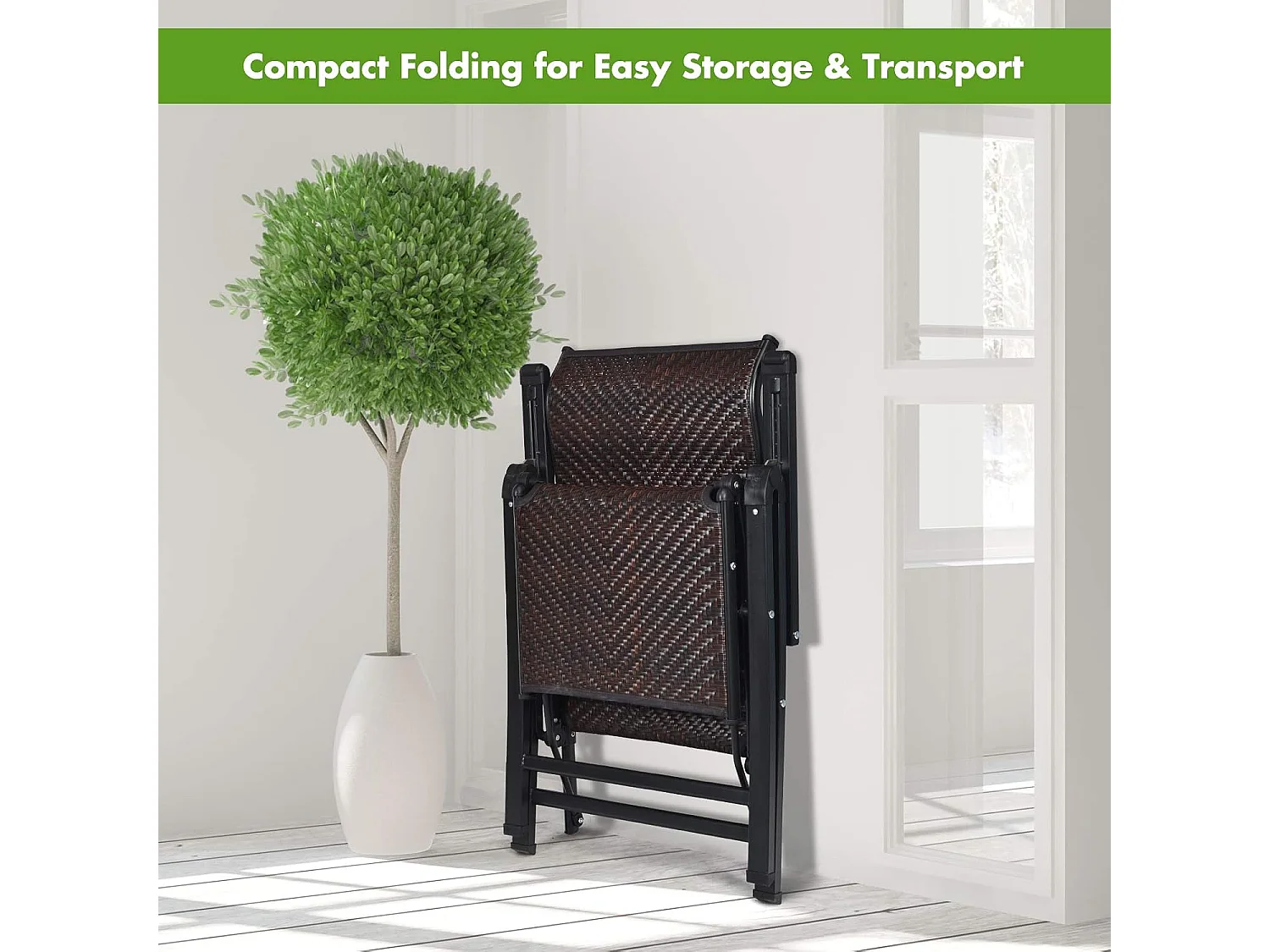 Chaises Pliantes de Jardin en Rotin et fibre naturelle, 2 Pièces avec Dossier Réglable pour Extérieur&Intérieur, 71x58x111cm, Marron