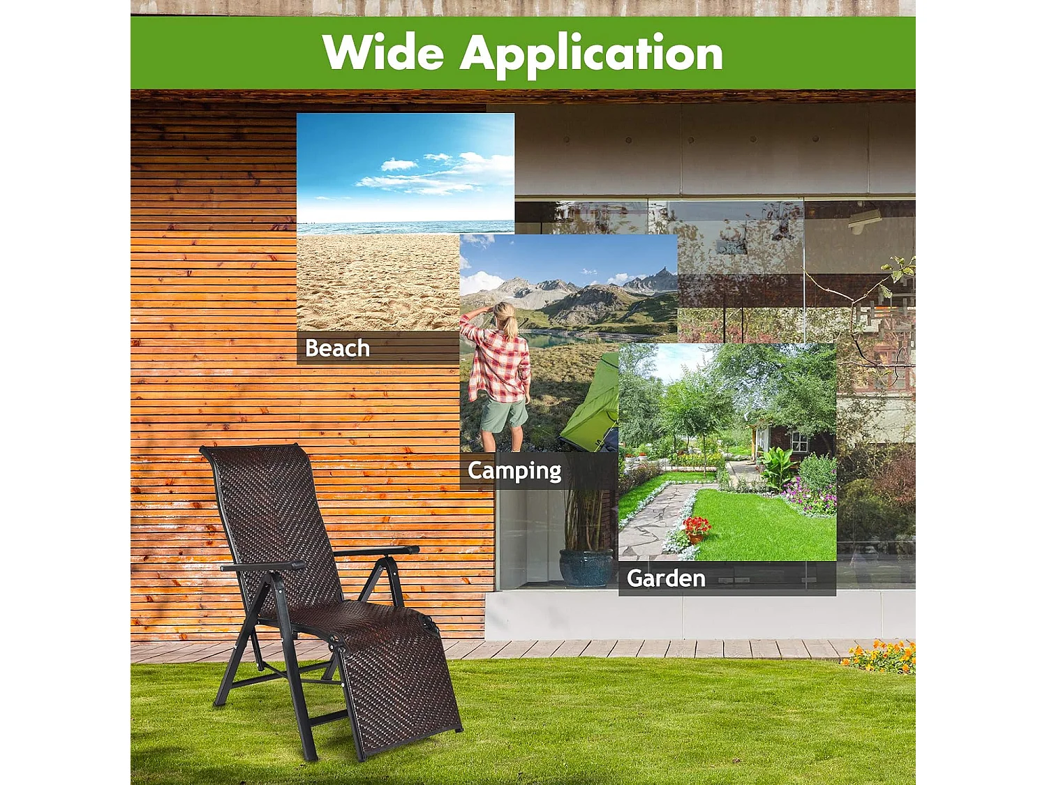 Chaise de terrasse en aluminium et rotin synthétique