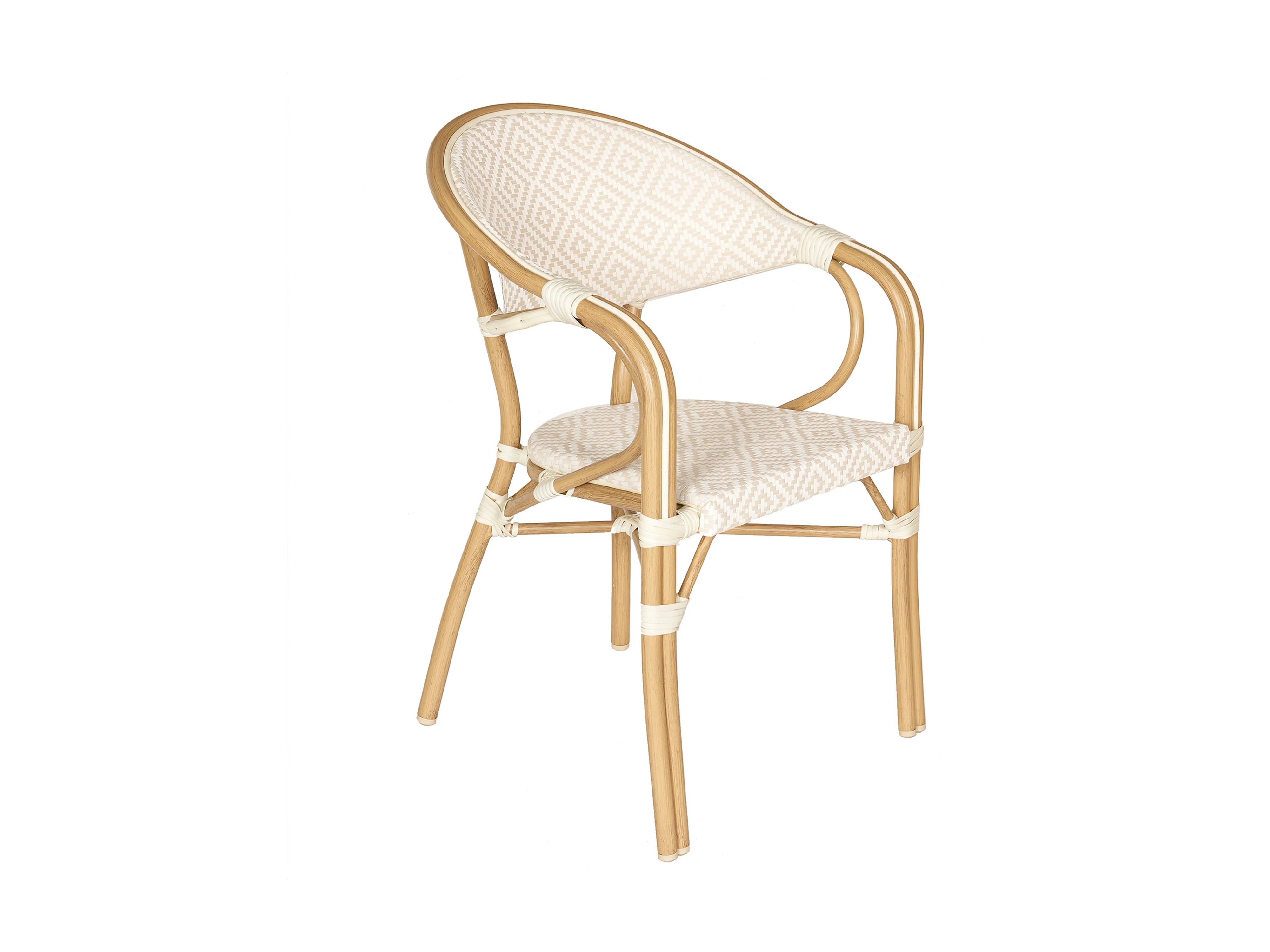 Chaise de terrasse style bistrot parisien en aluminium et rotin beige