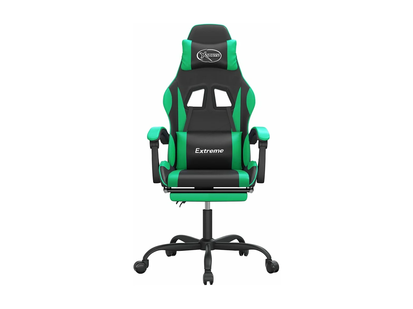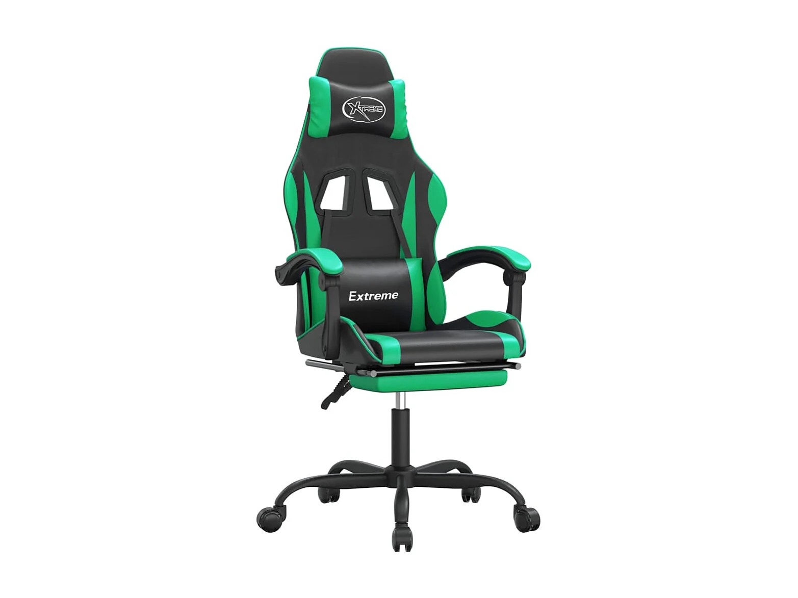 Chaise de jeu pivotante et repose-pied Noir et vert Similicuir