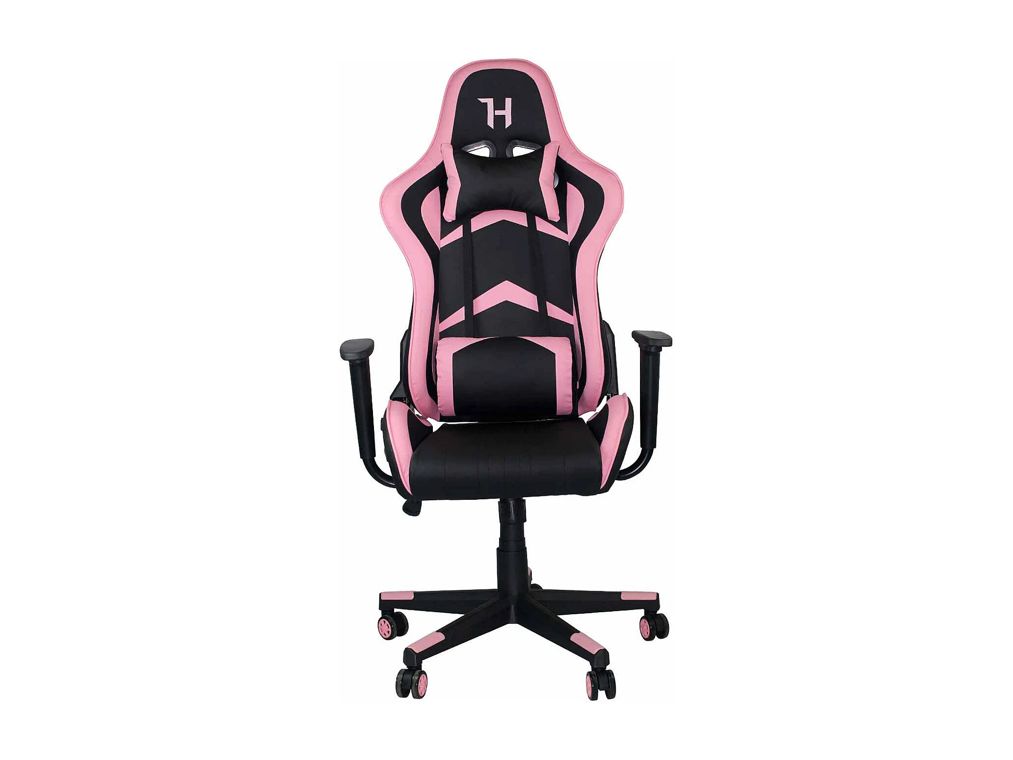 Chaise gaming inclinable réglable SIMONA rose et blanche