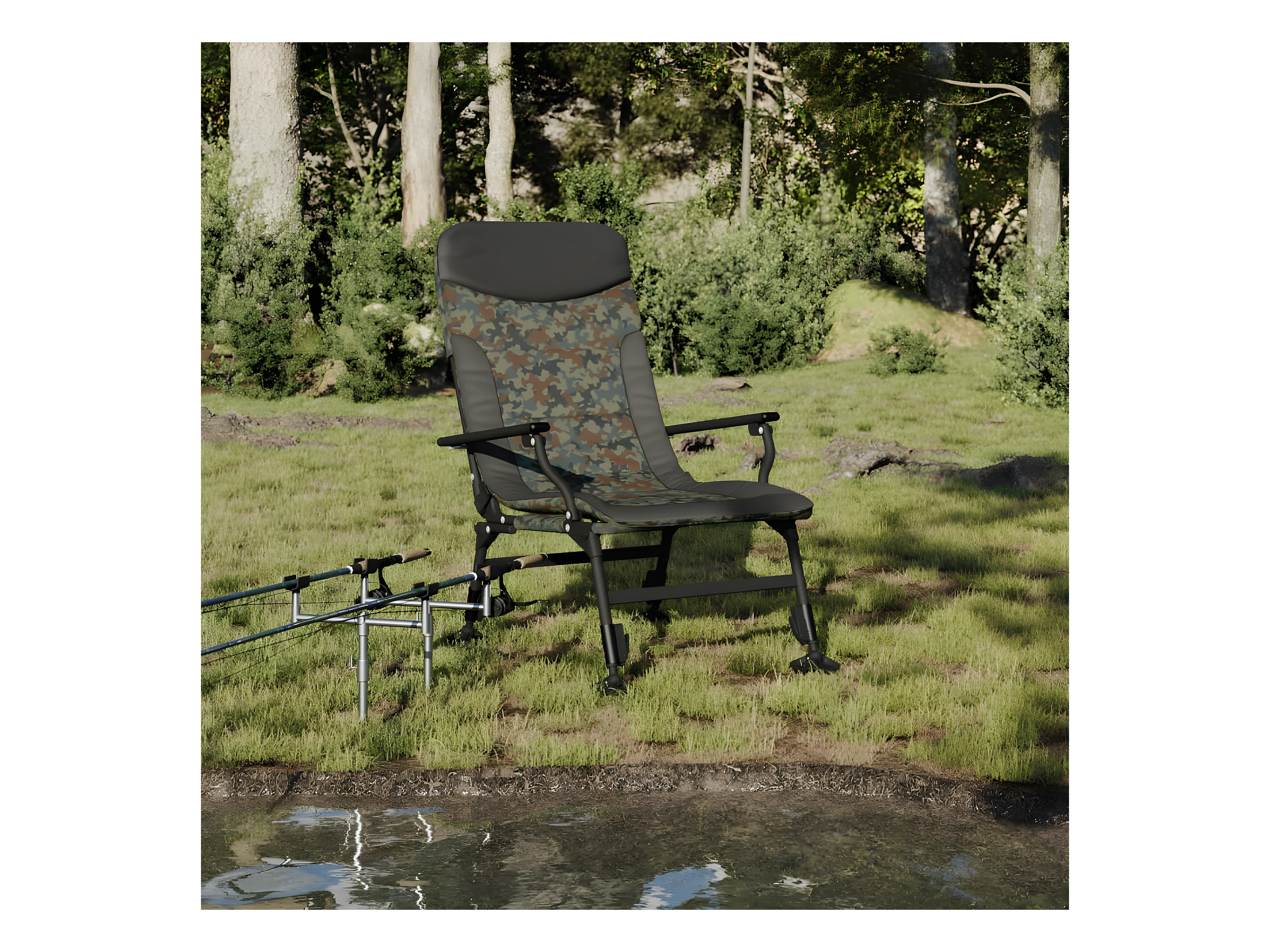 Chaise de pêche avec accoudoir pliable camouflage FR28214