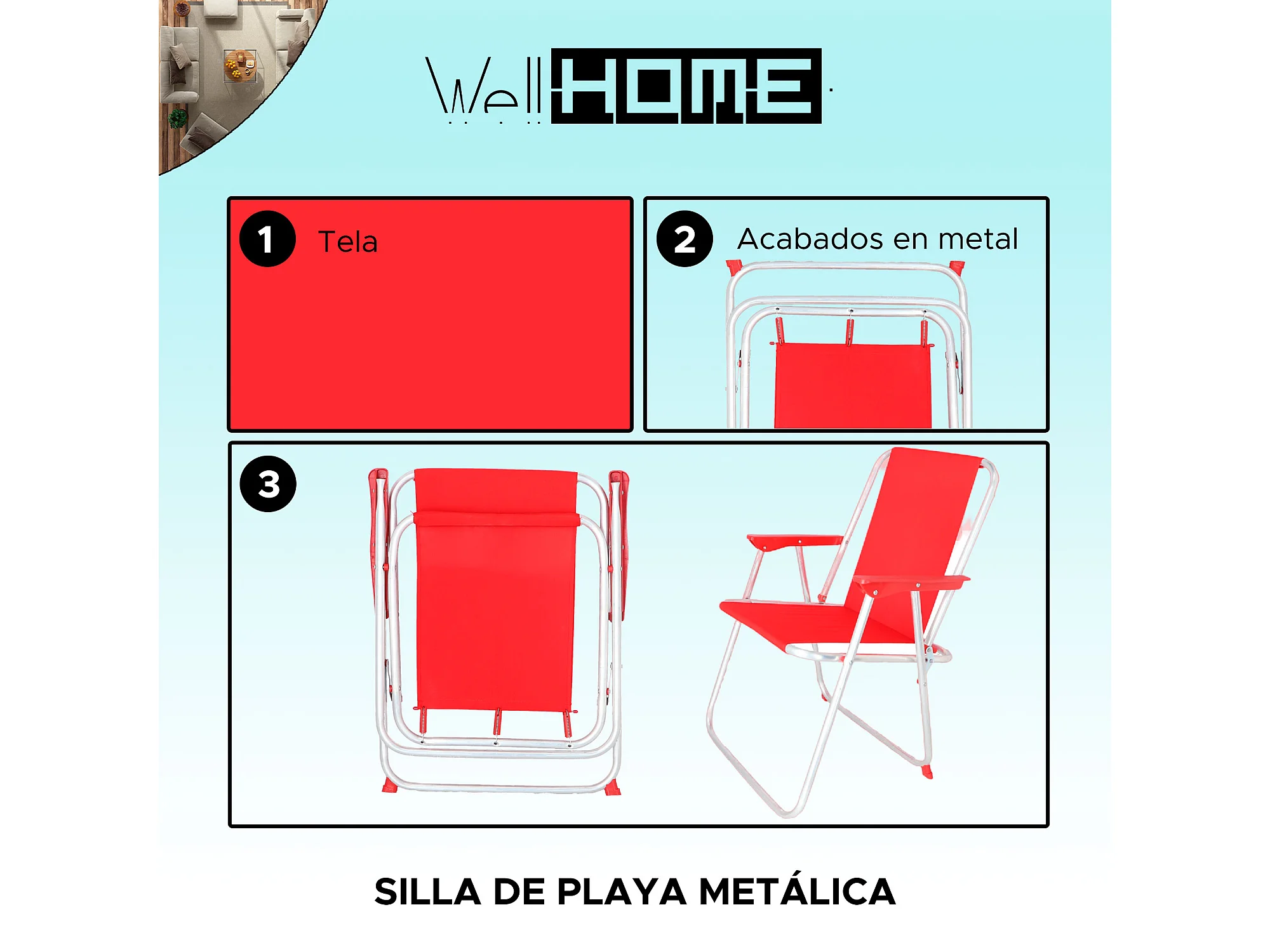 Chaise de plage pliante en métal rouge, 44x44x74 cm