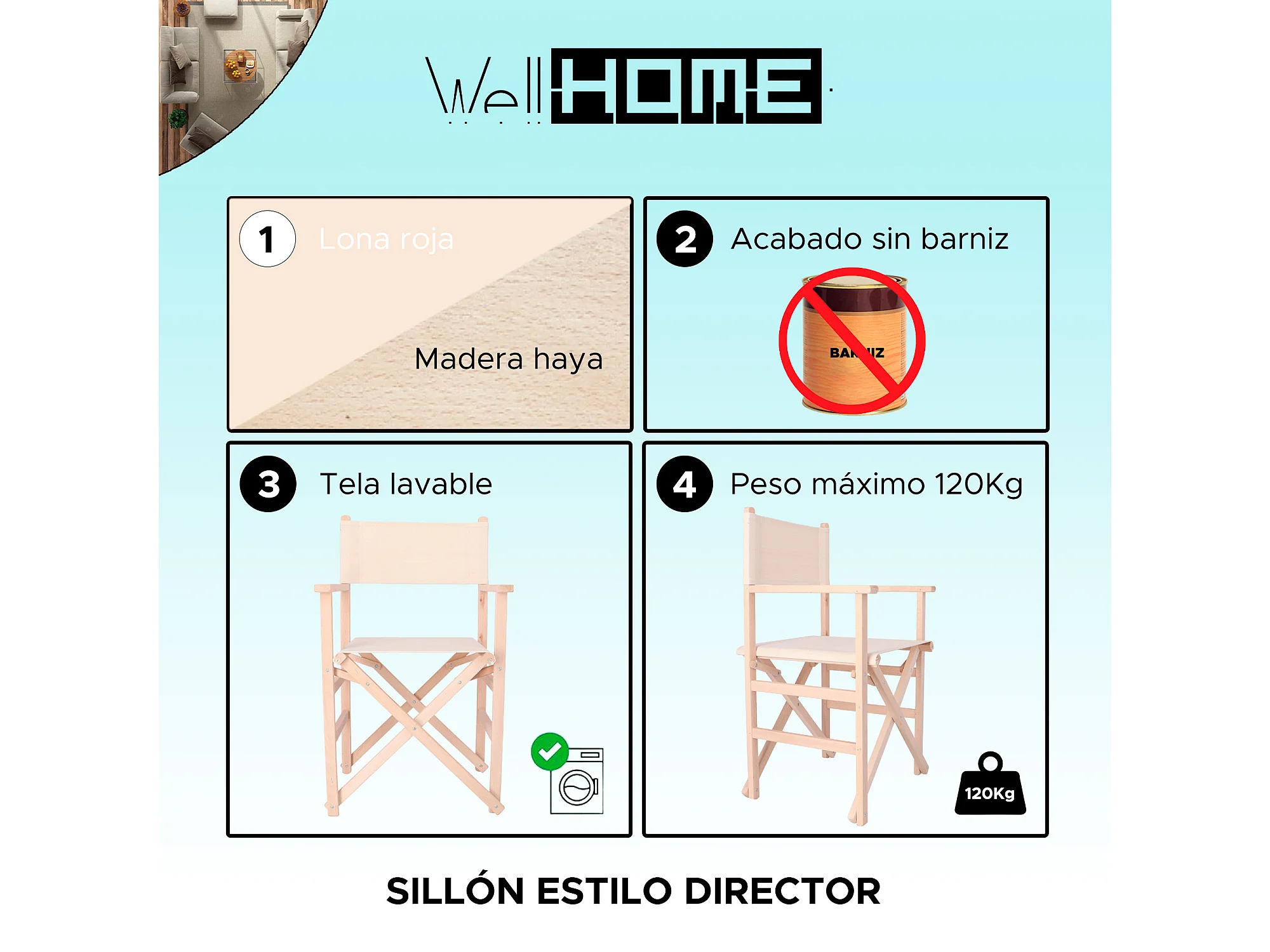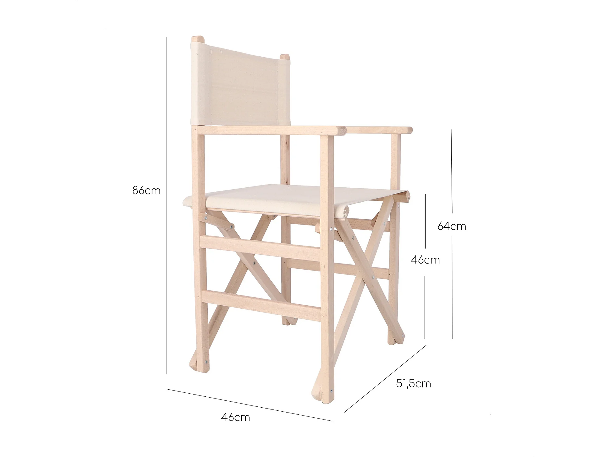 Chaise de réalisateur en bois de hêtre fini SANS vernis, 51,5x46x86 cm