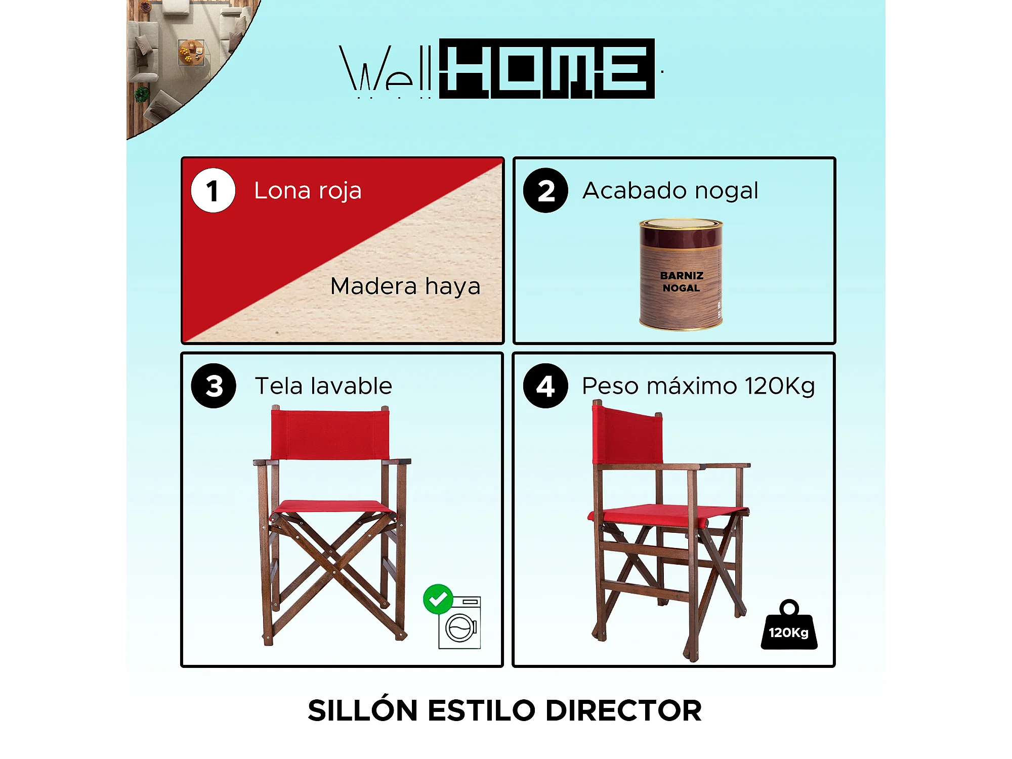 Chaise de réalisateur structure noyer et toile marron, 51x46x86 cm