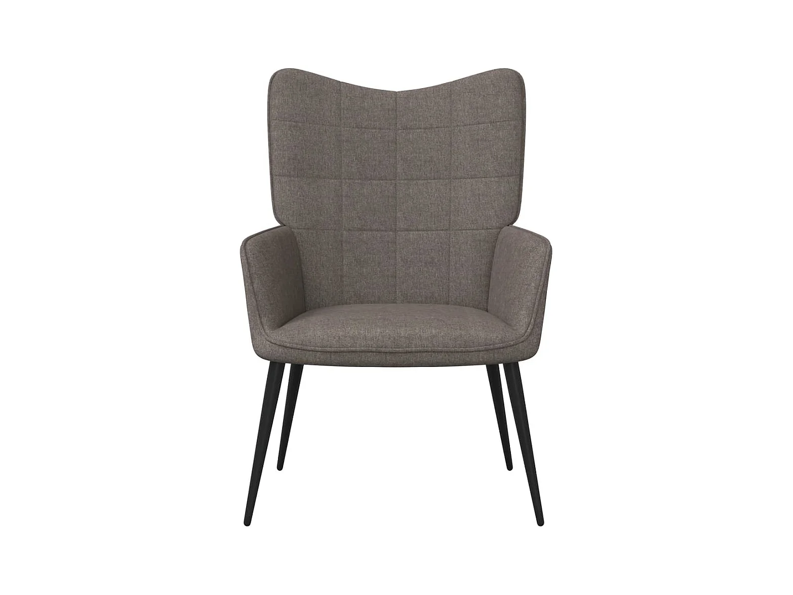 Fauteuil tapissé taupe avec coussin noir et pieds en métal noir