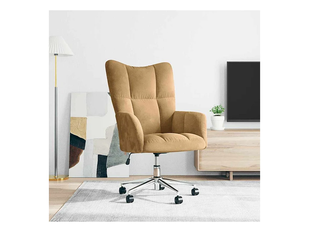 Chaise de bureau à roulettes velours côtelé camel L 60 x P 62 x H 89 / 99cm