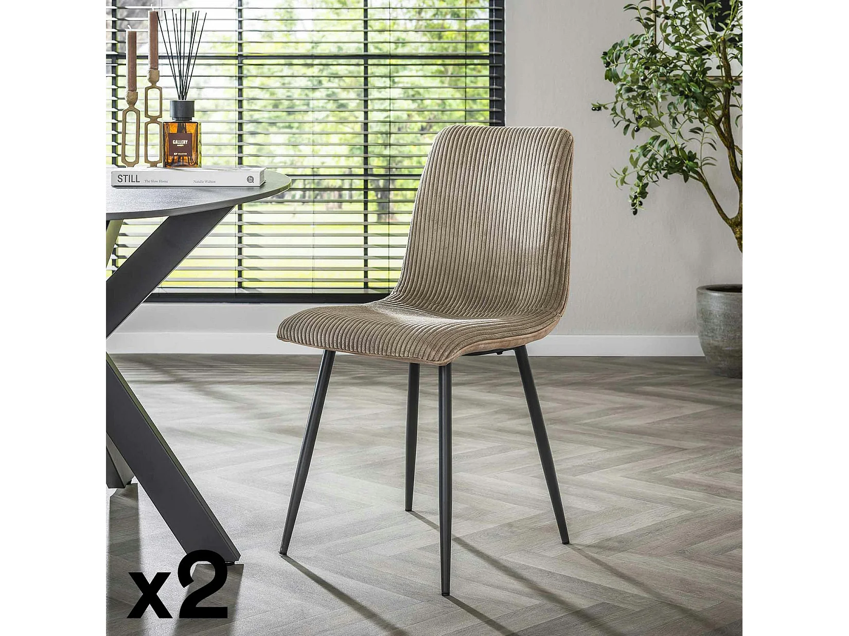 Chaise de salle à manger beige sable en tissu côtelé (lot de 2) TAJ