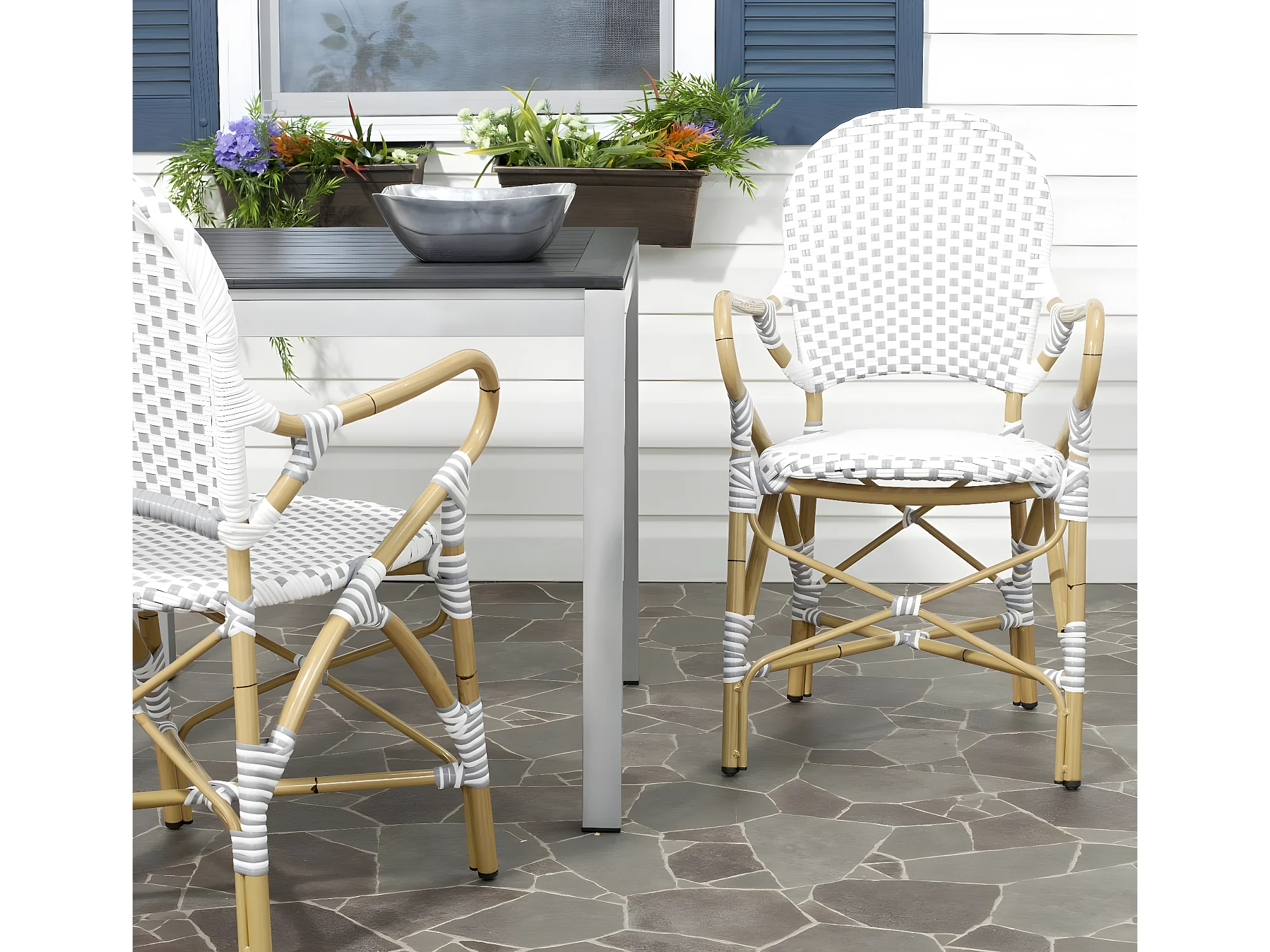 Lot de 2 Chaise de salle à manger d'extérieur Gris & blanc & marron clair 55 X 53 X 88 cm - Marylou
