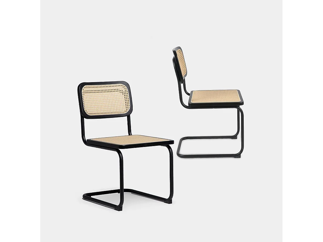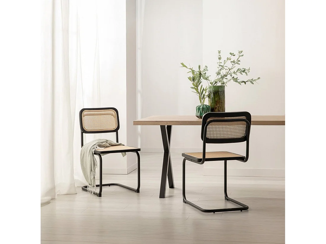 Chaise de salle à manger en bois noir-naturel 45x84 cm-Keila