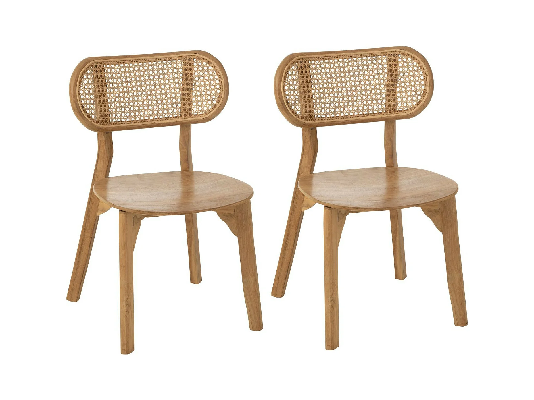 Chaise de salle à manger en teck naturel et rotin (lot de 2) - LIMA
