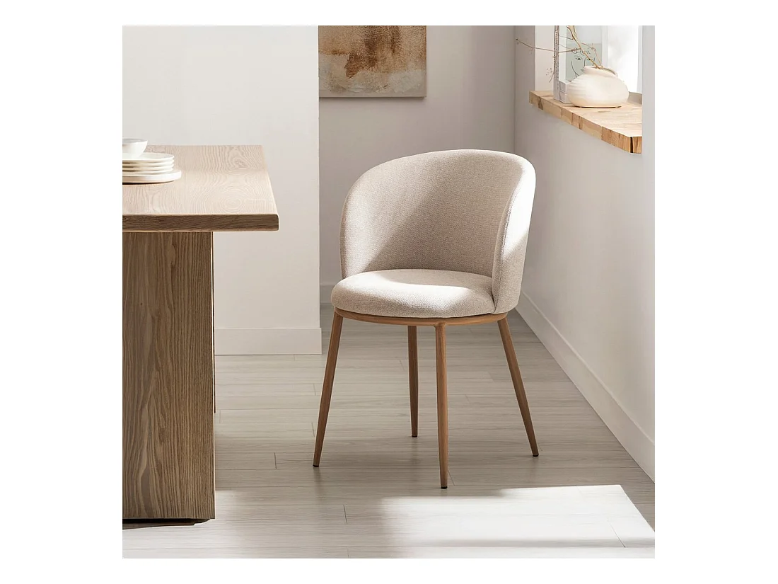 Chaise de salle à manger - Tapissée en tissu - Style scandinave - Evelyne Beige