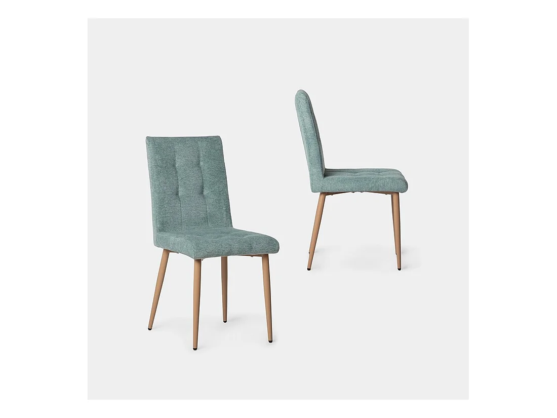 Lionel - Lot de 2 chaises en tissu et métal - Couleur - Vert