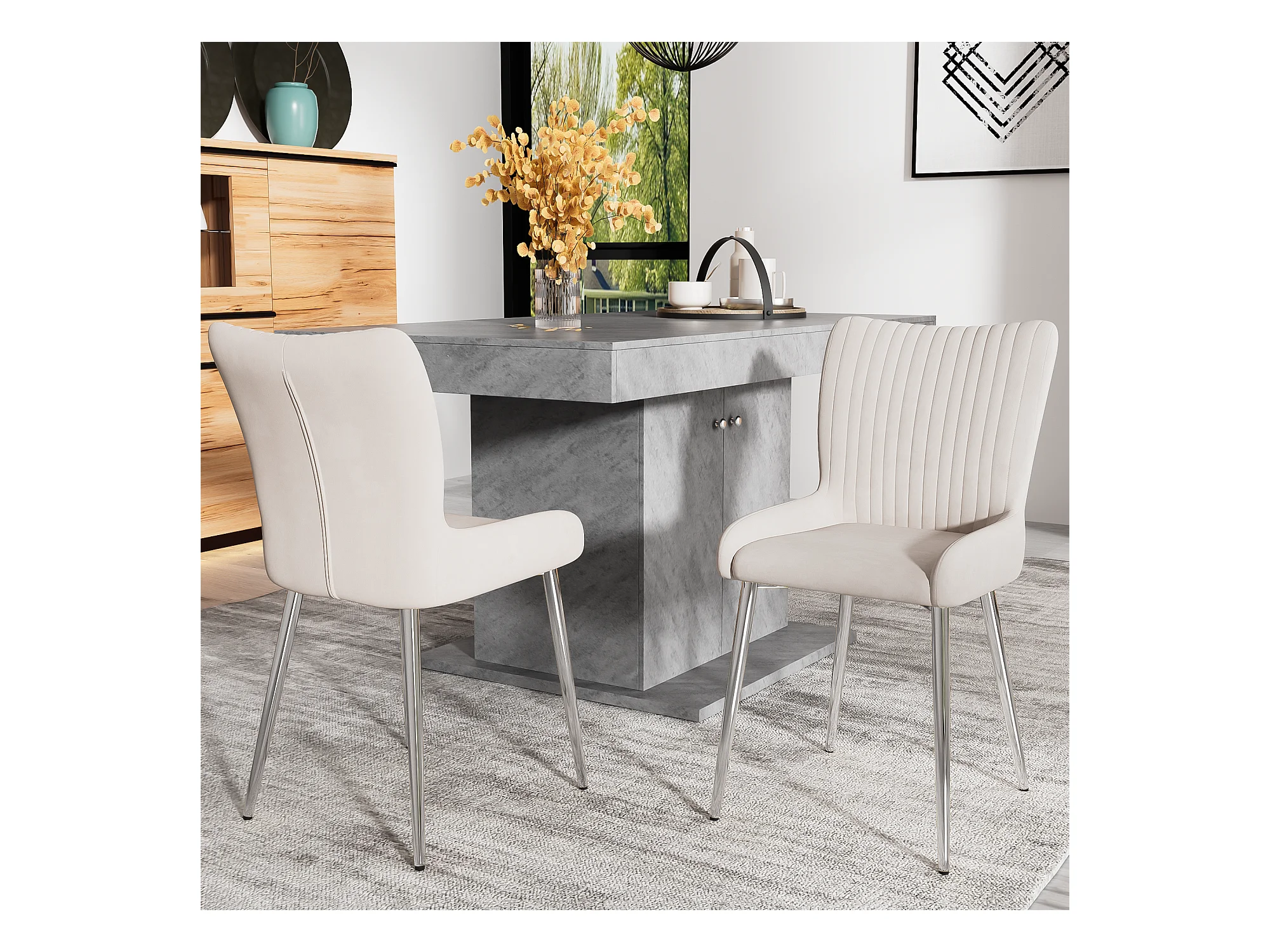 Chaise de Salle à Manger en Velours, 2 pièces, design luxueux, avec soutien lombaire et pieds métalliques argentés, Beige
