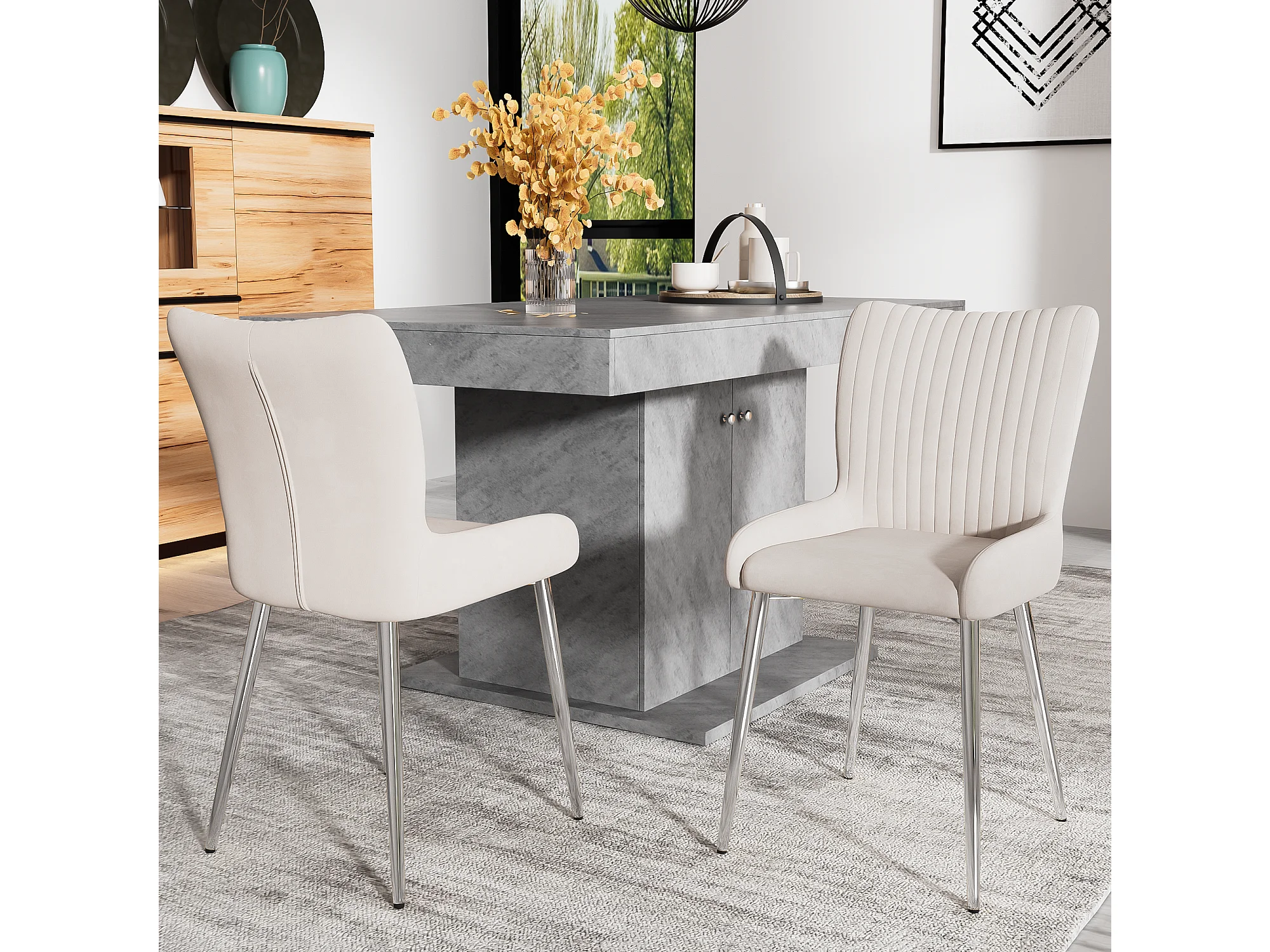 Chaise de Salle à Manger en Velours, 4 pièces, design luxueux, avec soutien lombaire et pieds métalliques argentés, Beige