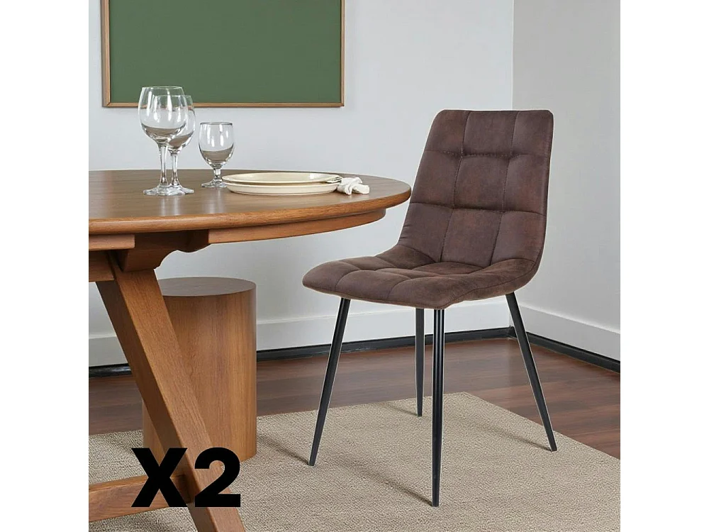 Chaise de salle à manger marron motif damier (lot de 2) TARAZ