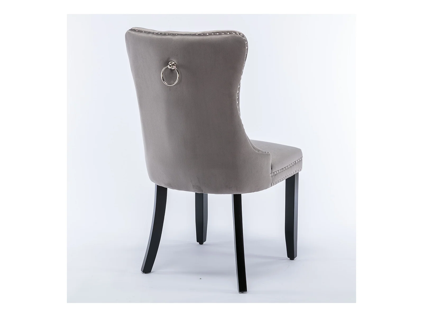 Chaise de salle à manger moderne, velours gris, pieds en bois, clous décoratifs, lot de 2 (65x50x95 cm)