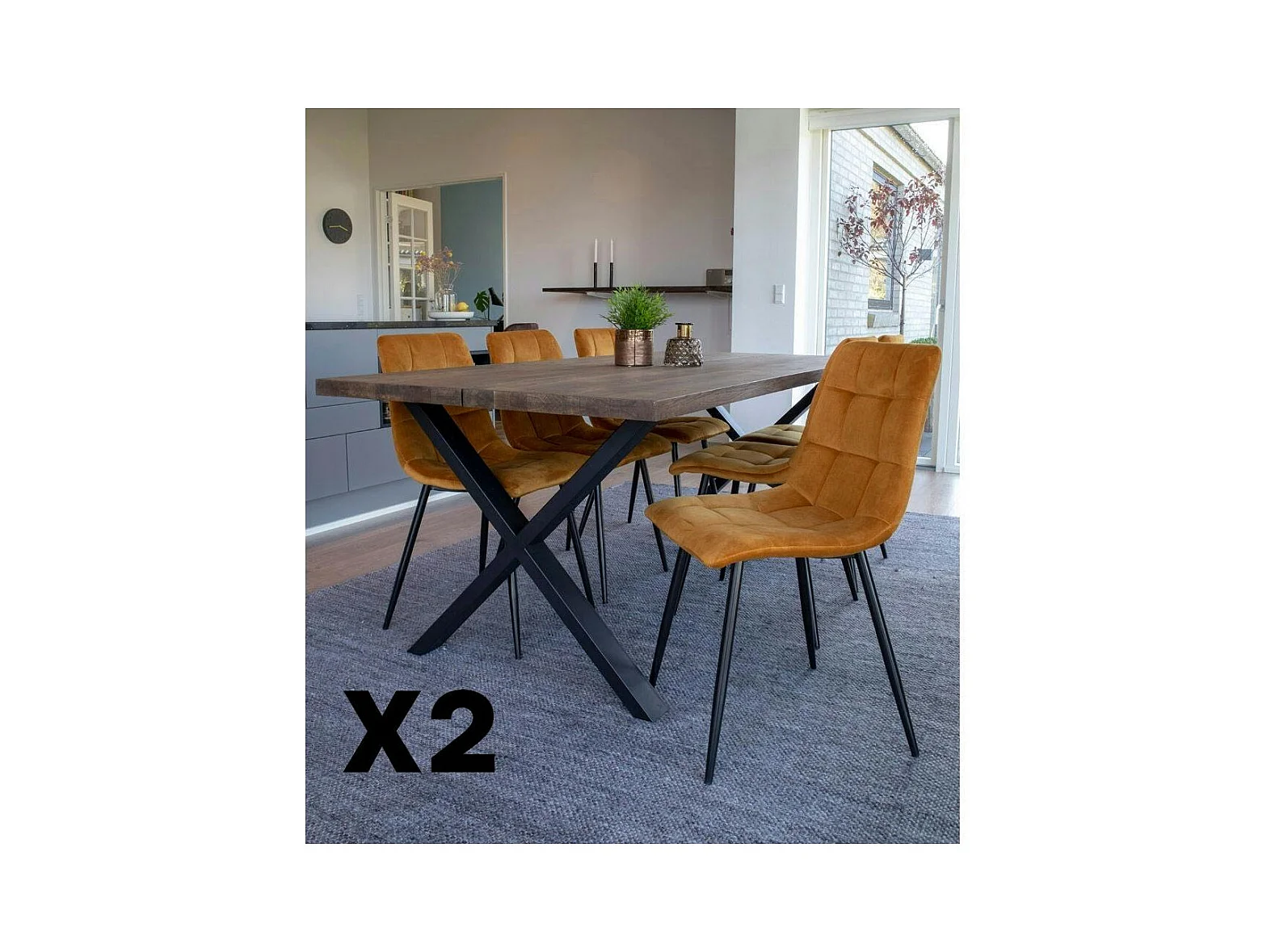 Chaise de salle à manger moutarde motif damier (lot de 2) TARAZ