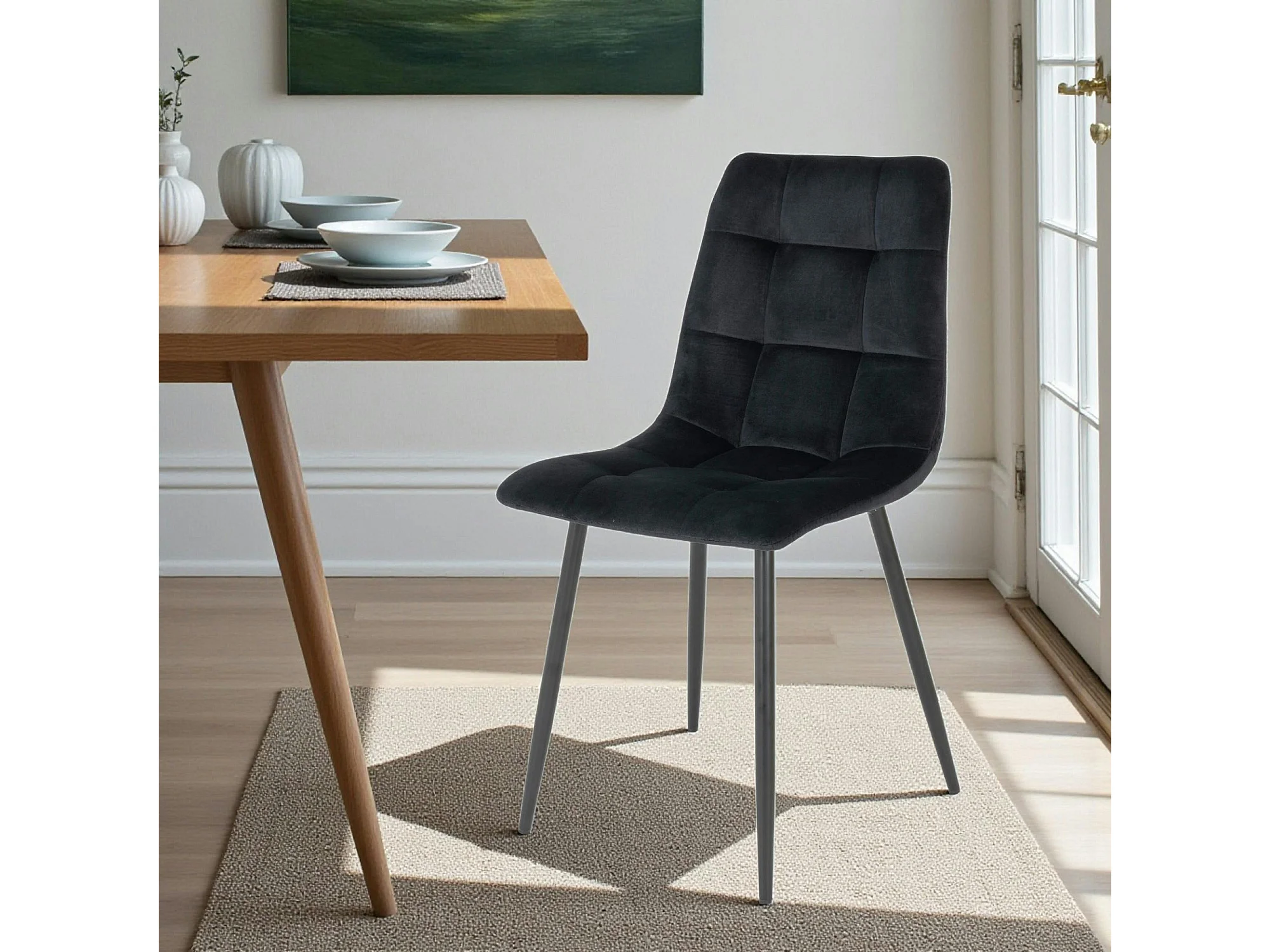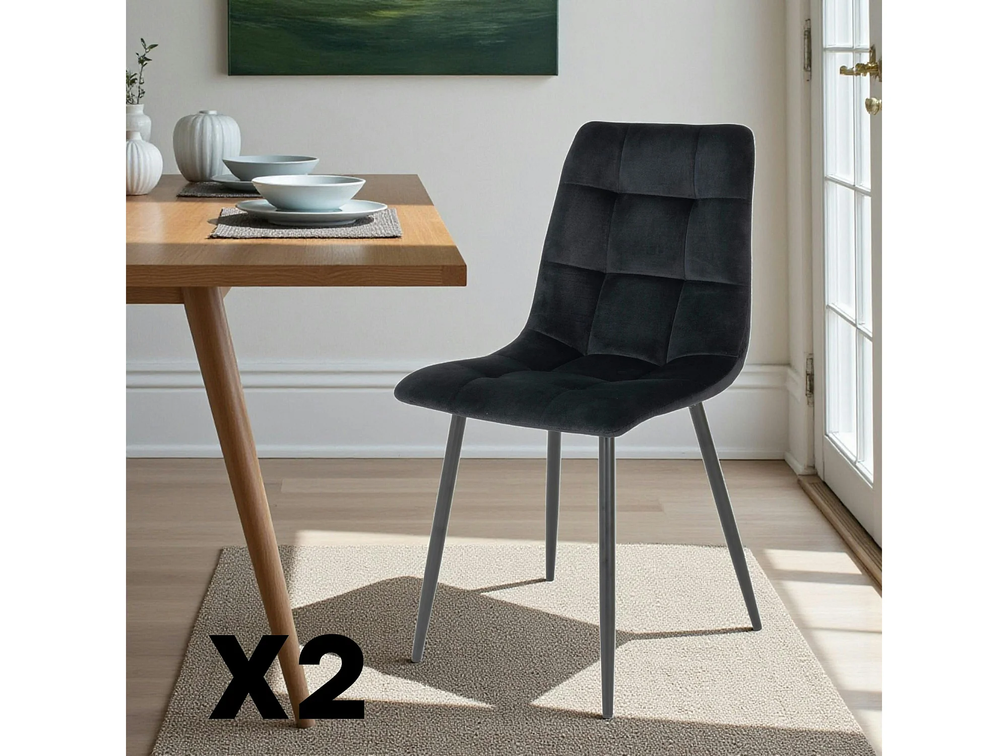 Chaise de salle à manger noire motif damier (lot de 2) TARAZ